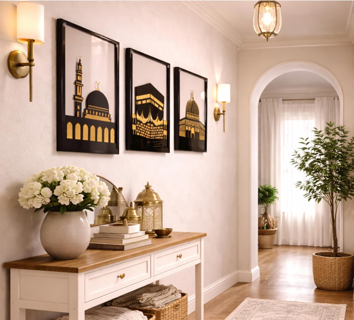 Perfect for living rooms, prayer rooms, bedrooms, offices, and Islamic spaces. This set also makes a thoughtful gift for Ramadan, Eid, housewarming, Nikah, and Umrah or Hajj return.