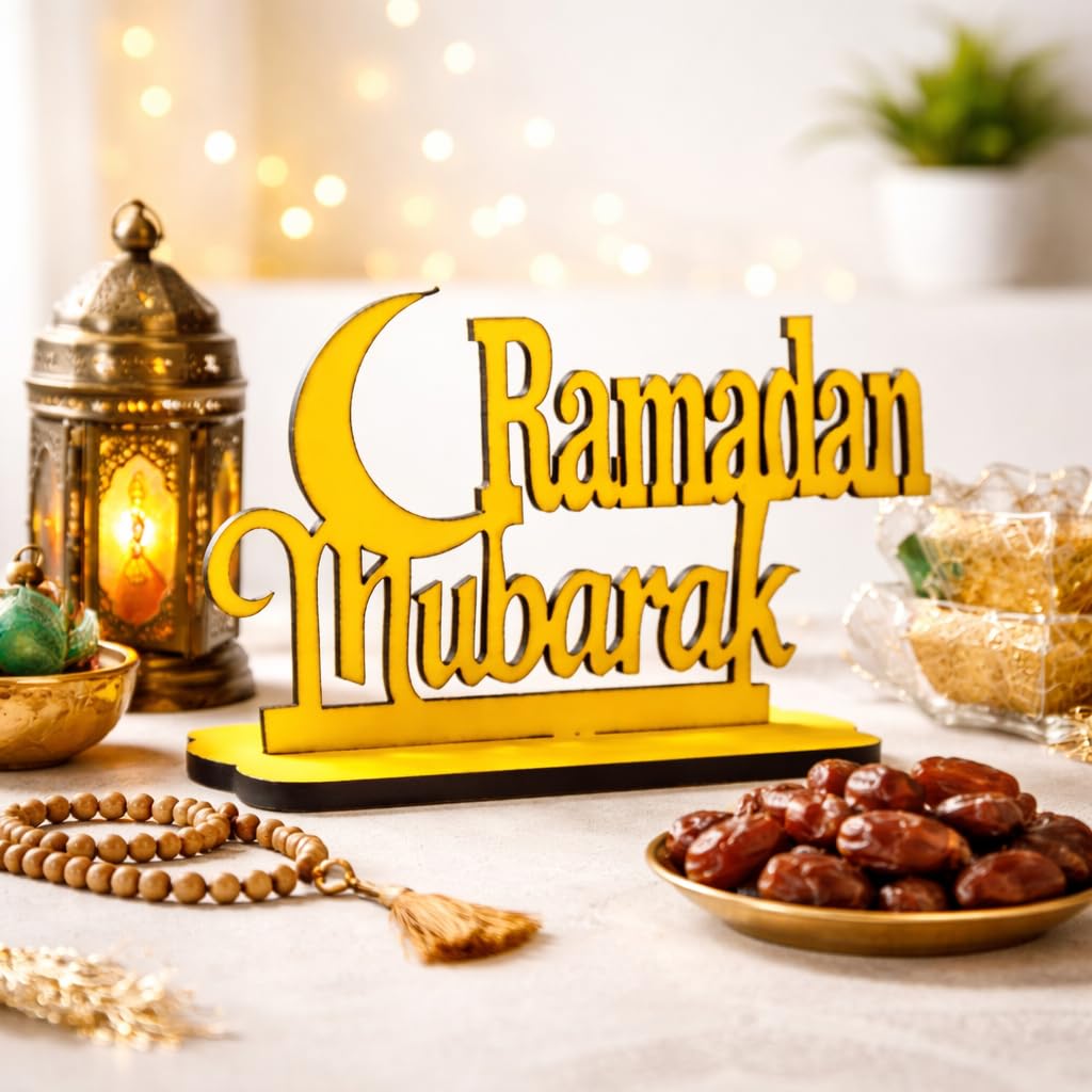 High-Quality Durable Wooden Material :- Made from premium engineered wood, this Ramadan wooden showpiece offers excellent durability, smooth finish, and long-lasting use without fading or damage.