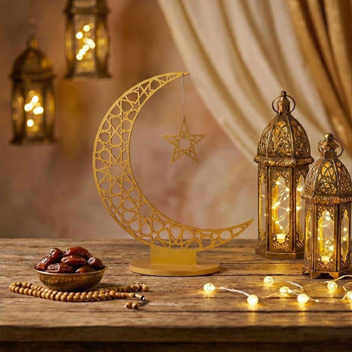 🏠 Perfect for Ramadan and Eid Setup: Place this crescent moon decor on your dining table, console, or prayer corner. It creates a clear focal point for iftar gatherings and Eid celebrations at home.