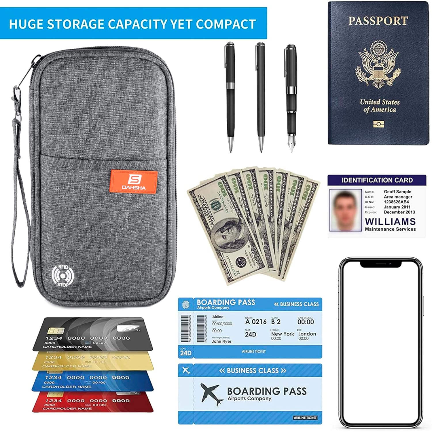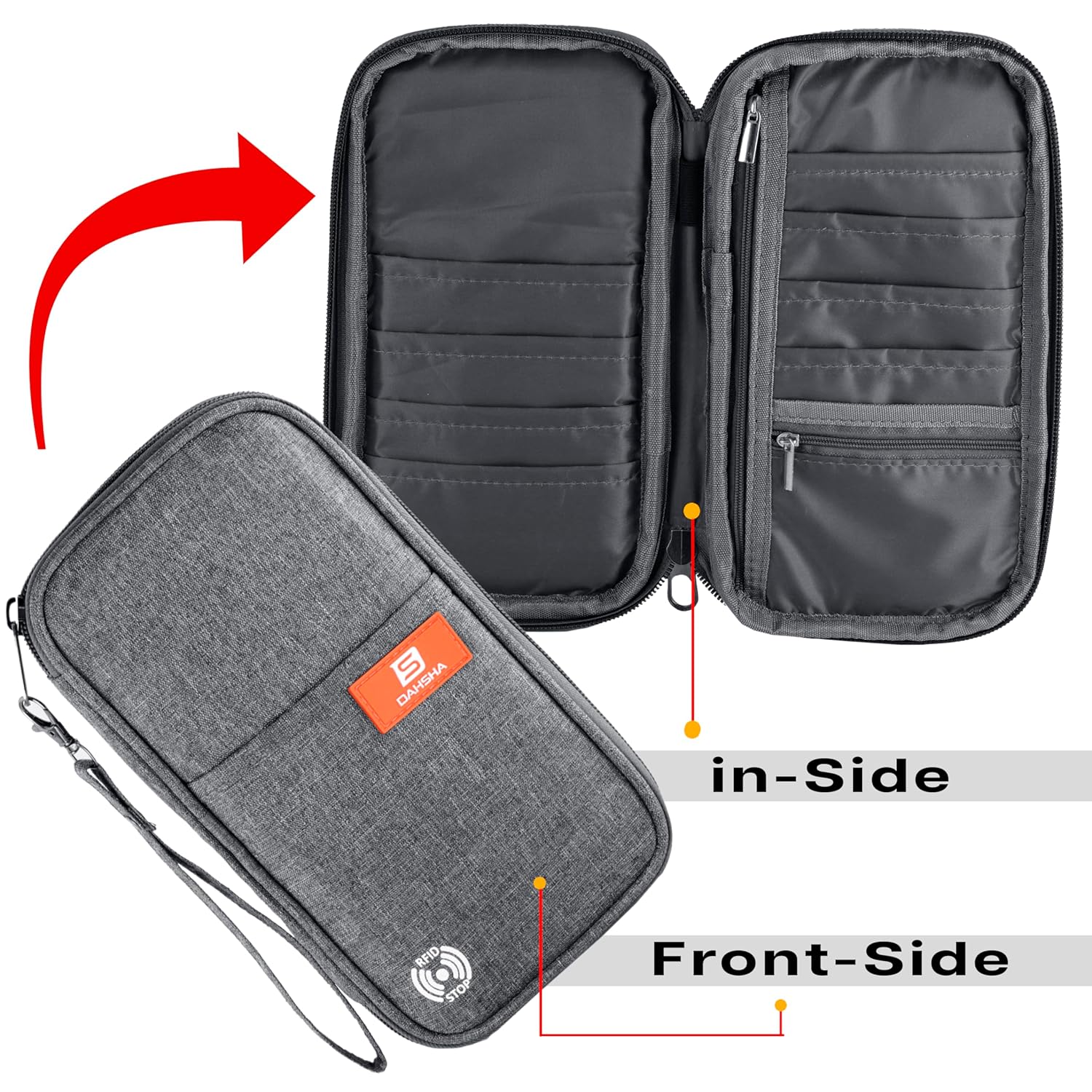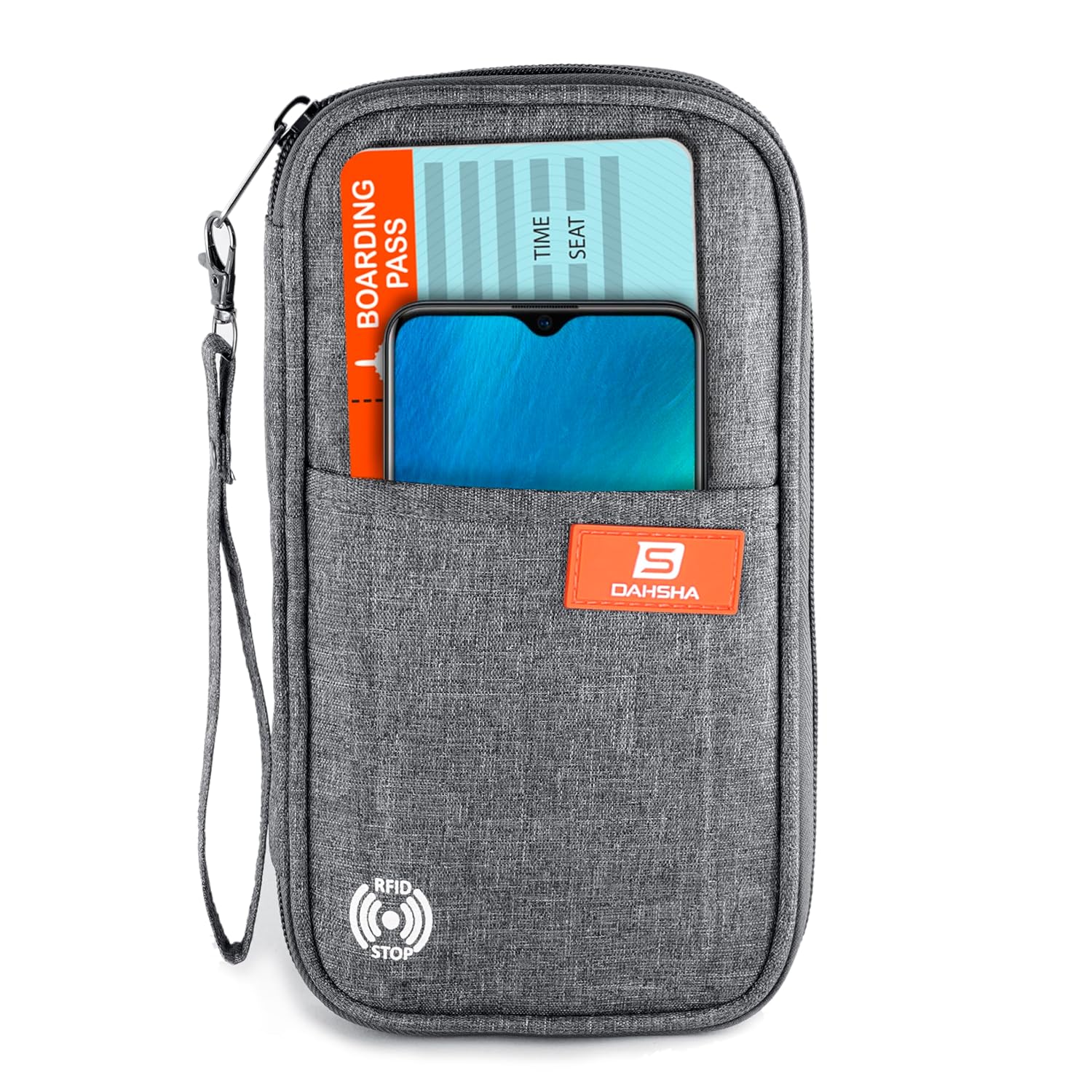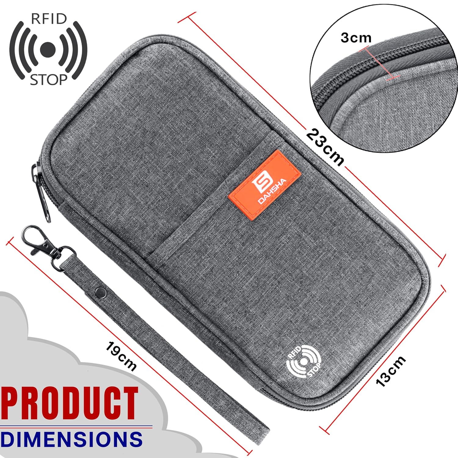 DAHSHA RFID Travel Family Passport Holder Wallet Organizer for Credit Debit Card Boarding Pass with Removable Hand Strap for Men and Women (Grey, 13 x 3 x 23 Cm)