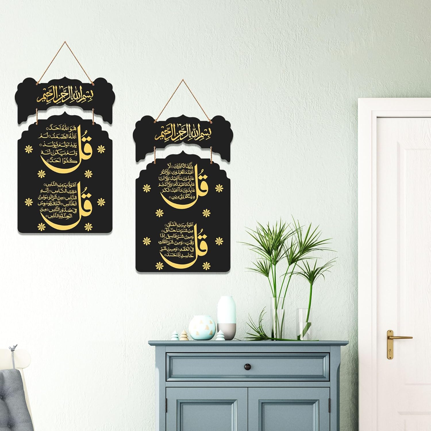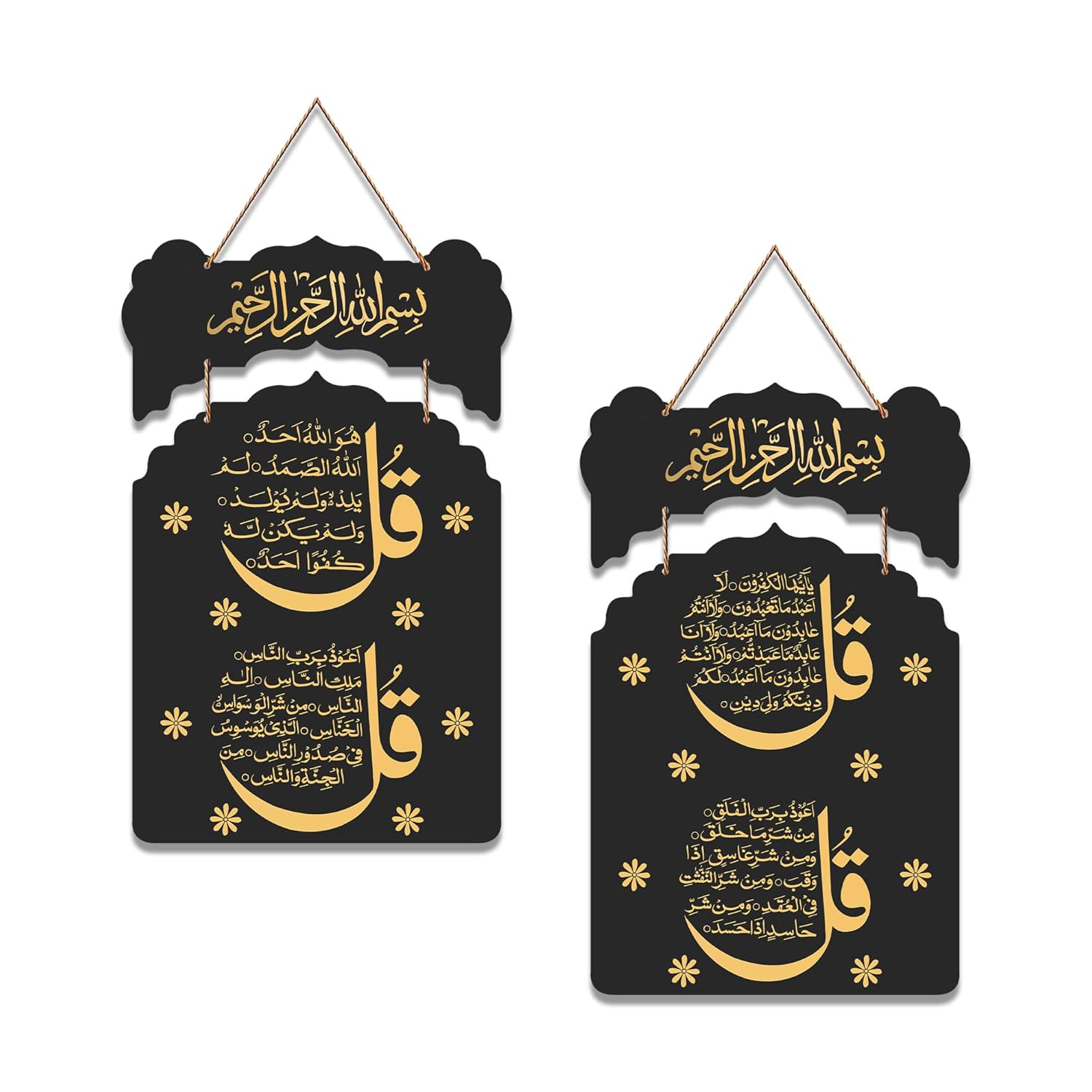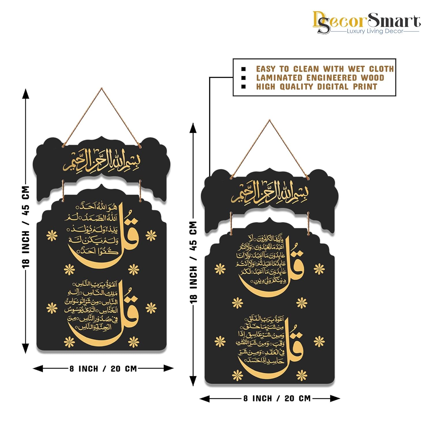 Be the first to review “Decor Smart Qul Surahs Islamic Wall Hanging | Black & Gold Arabic Calligraphy Metal Wall Art | Handcrafted Spiritual Quranic Decorative Accent for Home Masjid or Office Interiors (DWA_9220)”