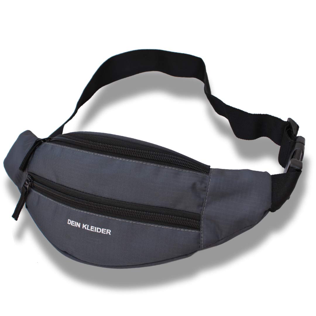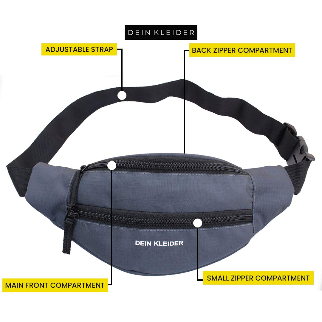 Dein Kleider Waist Pack Travel Handy Hiking Zip Pouch Document Money Phone Belt Sport Bag Bum Bag for Men and Women Nylon (Grey)
