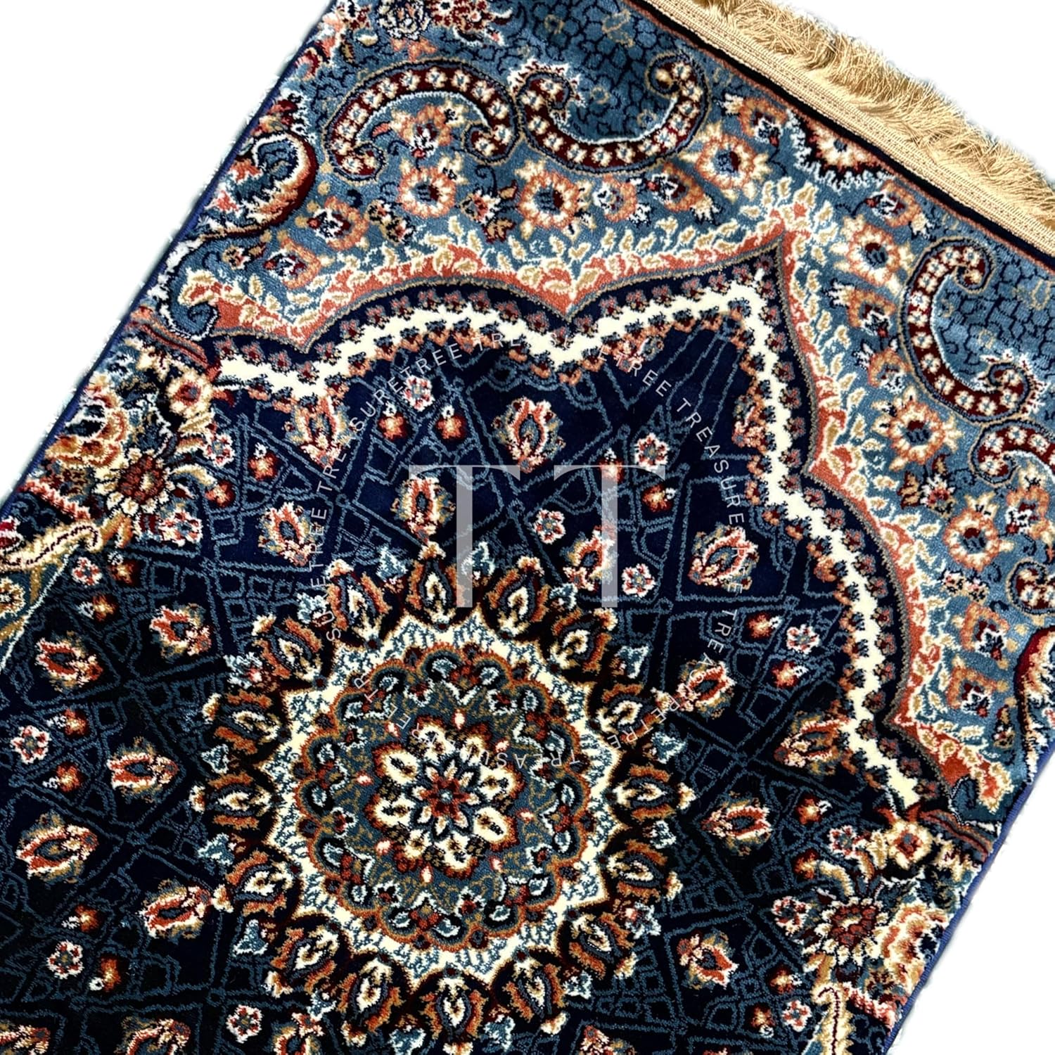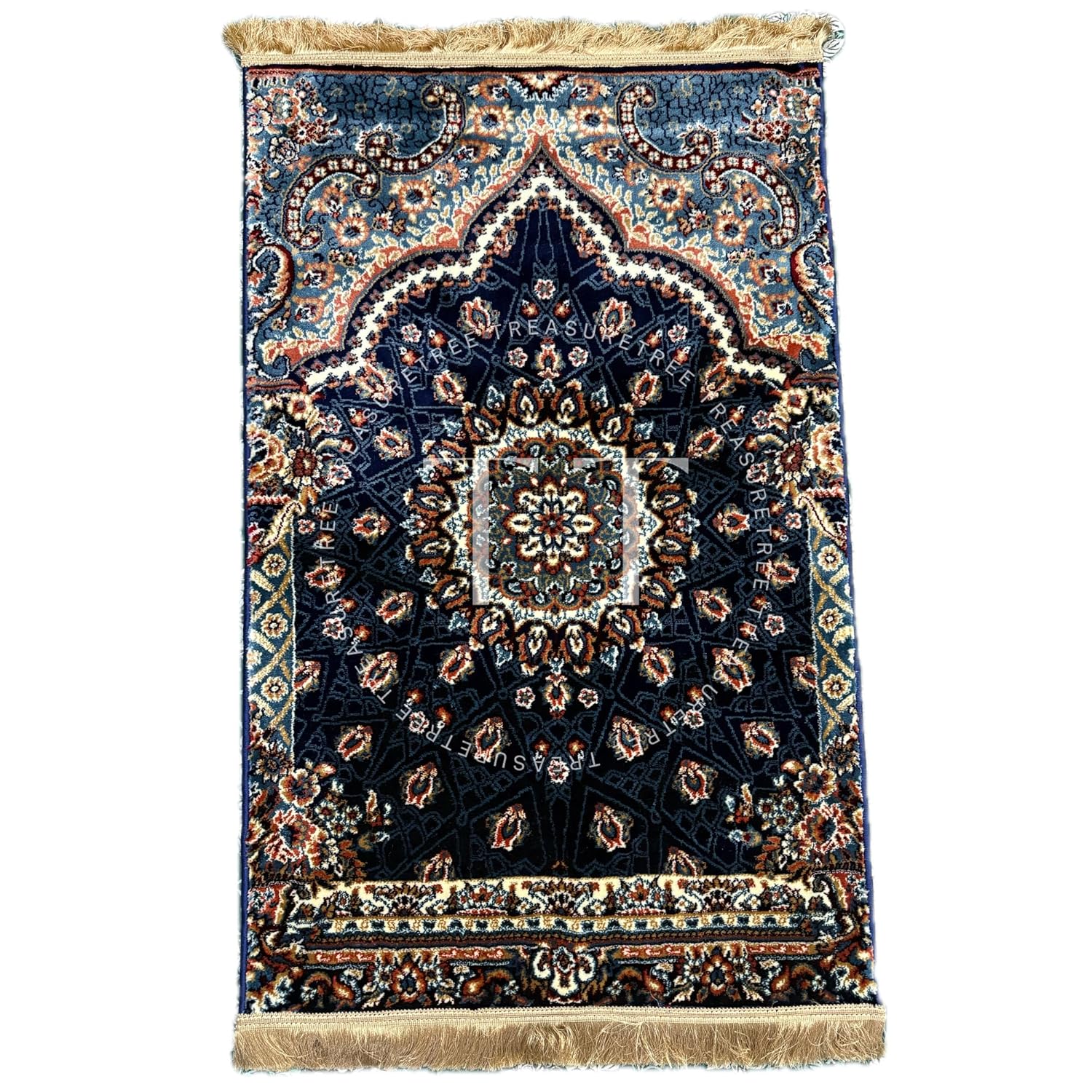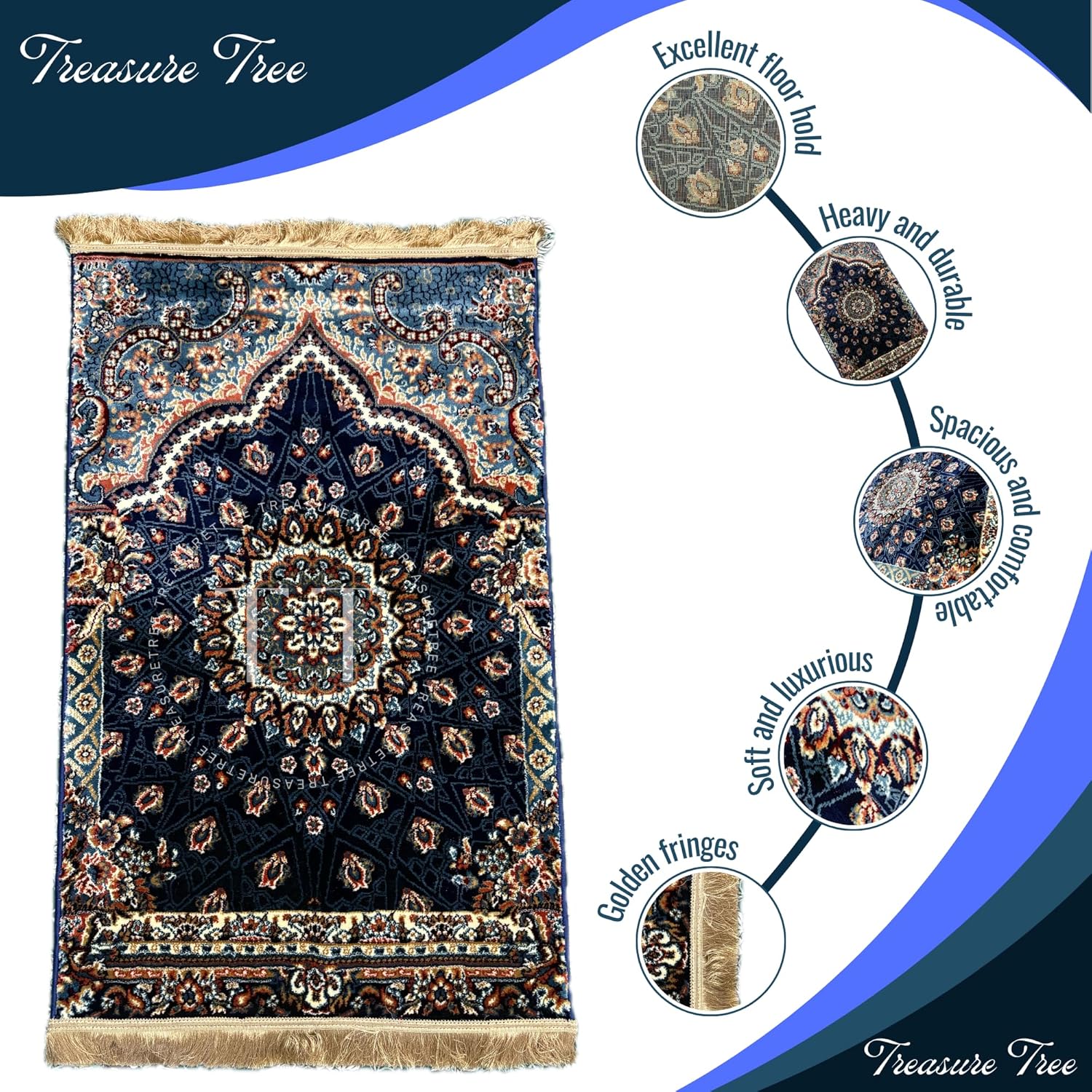 Deluxe Velvet Heavyweight Prayer Mat | Elegant and Super Soft Design | Ideal for Muslim Prayers | Heavy Carpet Mat with Premium Softness and Luxurious Design. (Navy Blue)