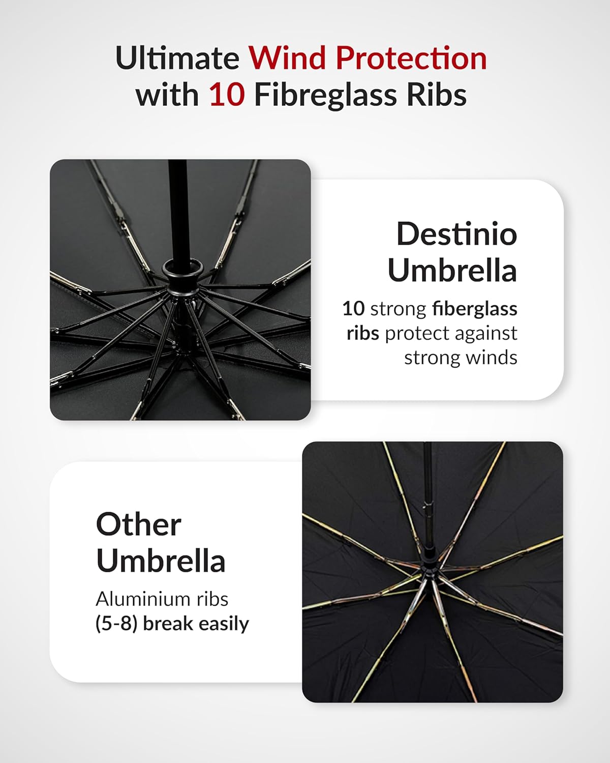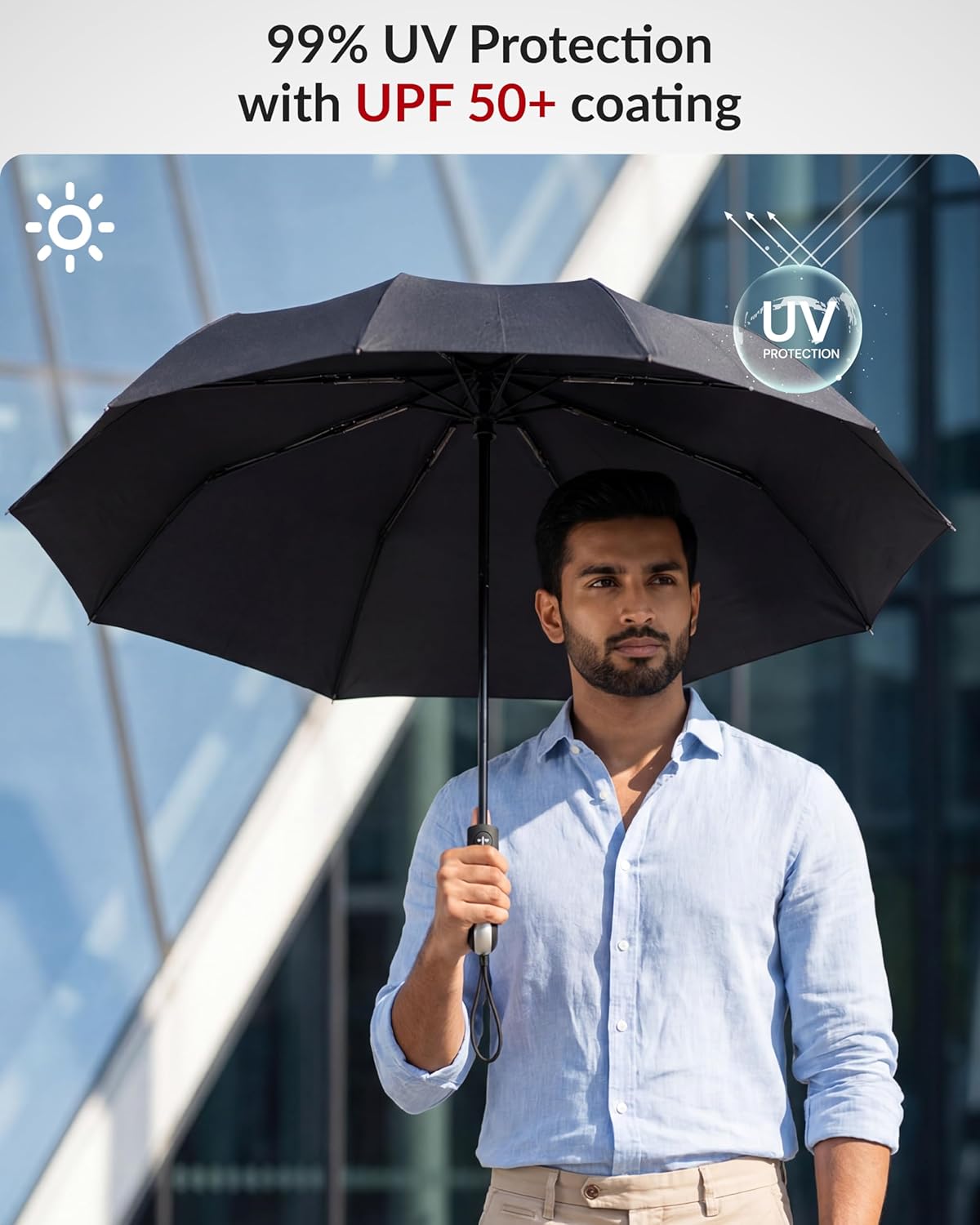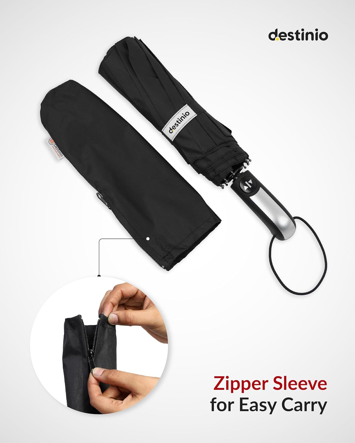 Destinio Umbrella for Man – Large Size, Fully Automatic, Windproof Fibreglass Ribs, UPF 50+ Sun Protection, Premium 210T Pongee, Foldable Umbrella for Rain with Travel Cover for Men and Women – 3 fold Compact Easy to Carry (Auto open auto close)