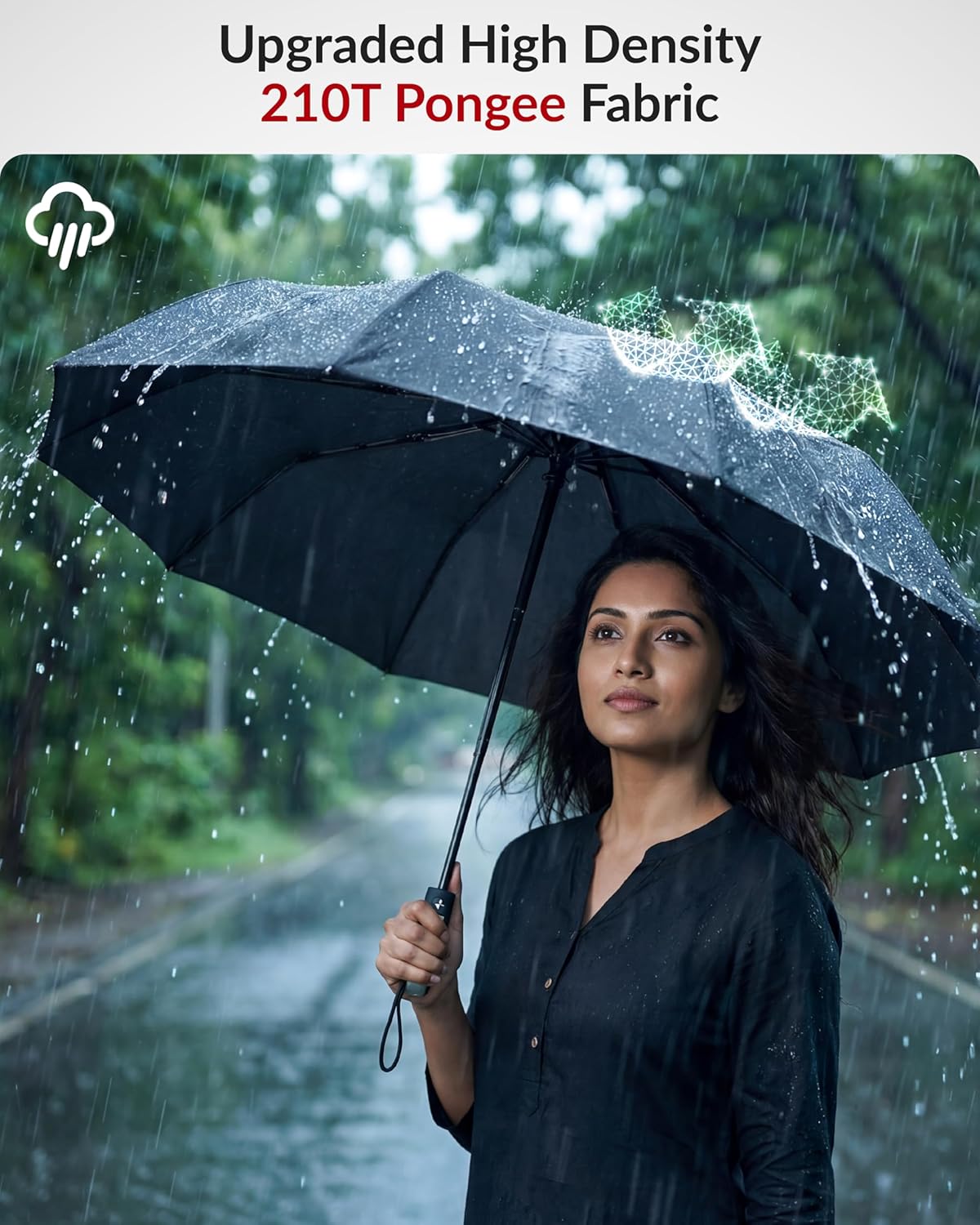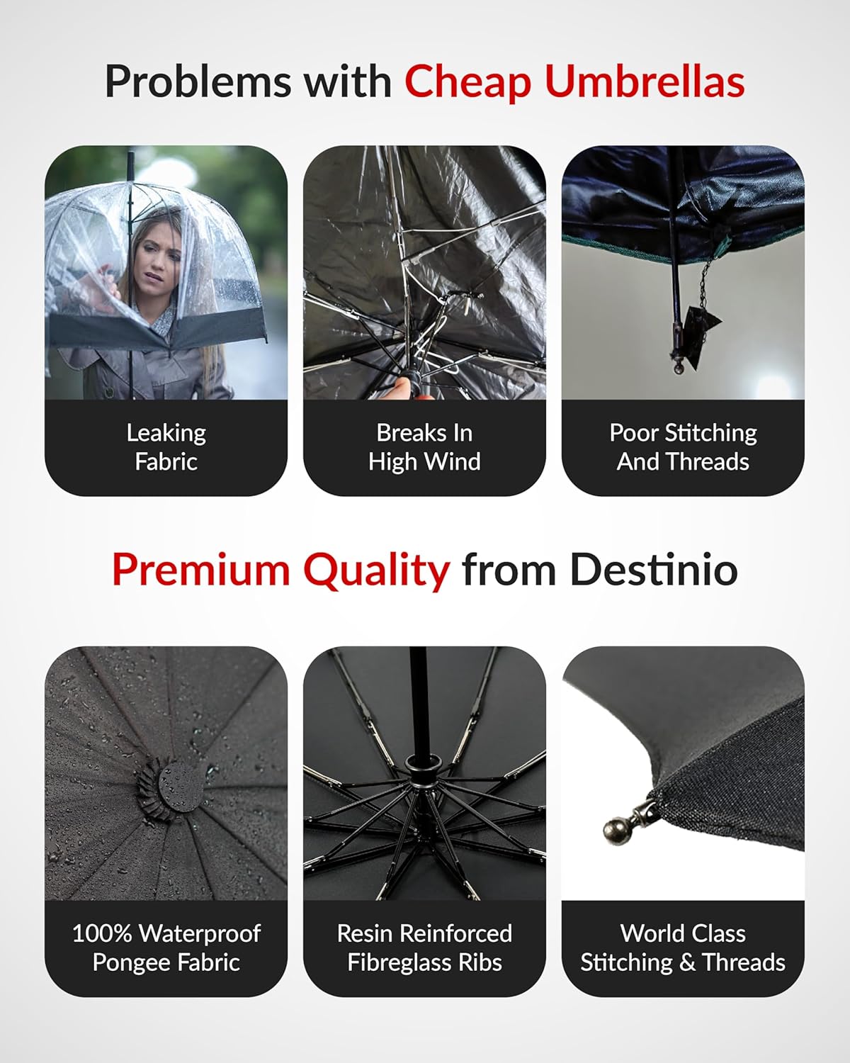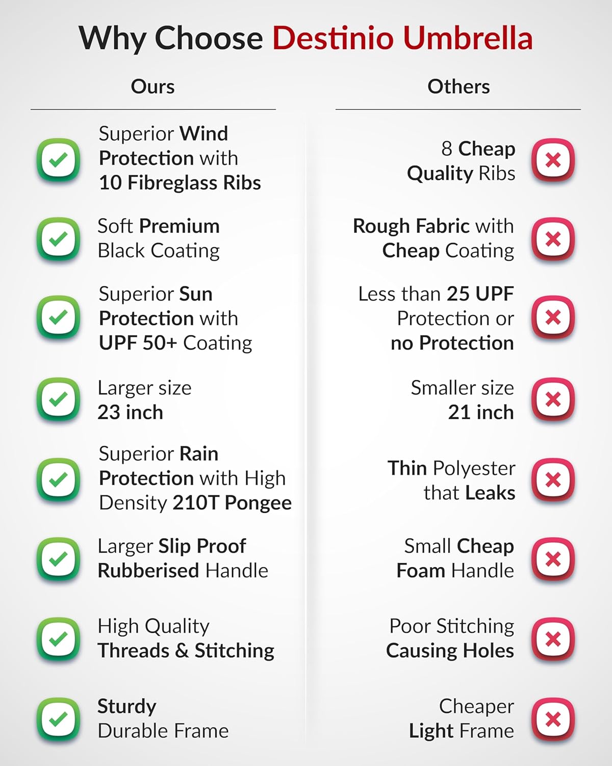 Destinio Umbrella for Man – Large Size, Fully Automatic, Windproof Fibreglass Ribs, UPF 50+ Sun Protection, Premium 210T Pongee, Foldable Umbrella for Rain with Travel Cover for Men and Women – 3 fold Compact Easy to Carry (Auto open auto close)