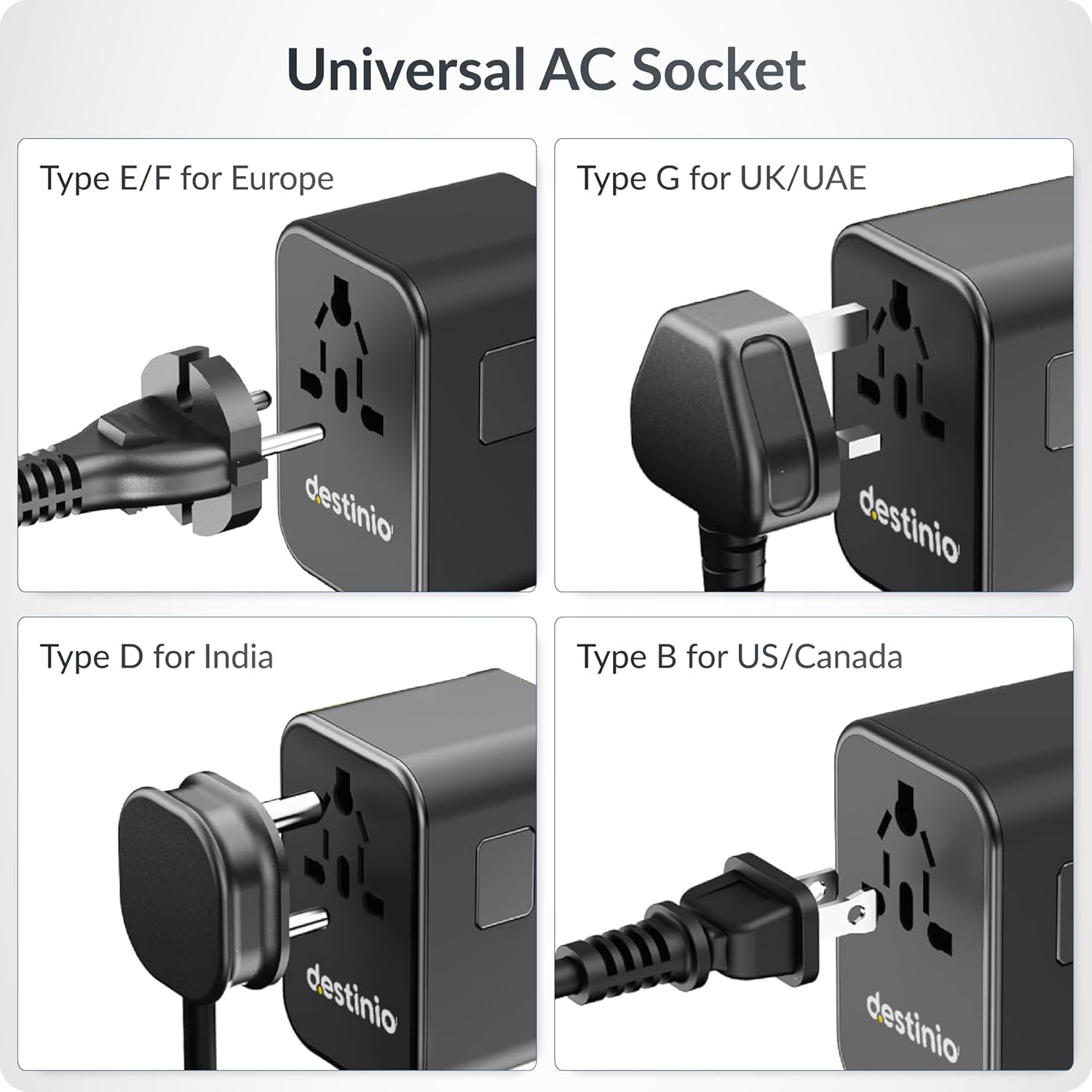 ✅ALL-IN-ONE TRAVEL ADAPTER: Destinio’s international travel adapter supports over 150 countries, including the USA, Europe, UK, Japan, China, India, Australia, and Brazil. Its versatile design makes it ideal as a travel adapter international all-in-one or a plug adapter for multi-country journeys. This Europe travel adapter is a must-have for travelers.