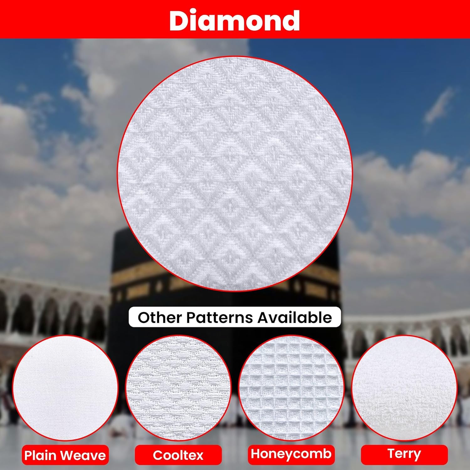 Diamond Weave Ihram for Men – 100% Cotton, Mill Bleached Bright White, Long-Lasting Color – Hajj & Umrah