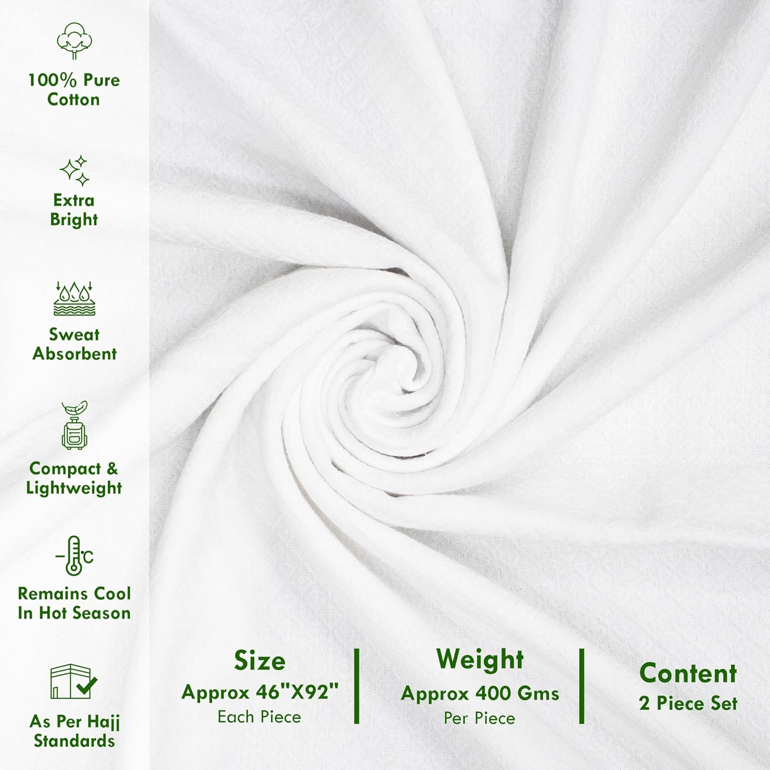 Diamond Weave Ihram for Men – 100% Cotton, Mill-Bleached Bright White, Long-Lasting Whiteness – Hajj & Umrah