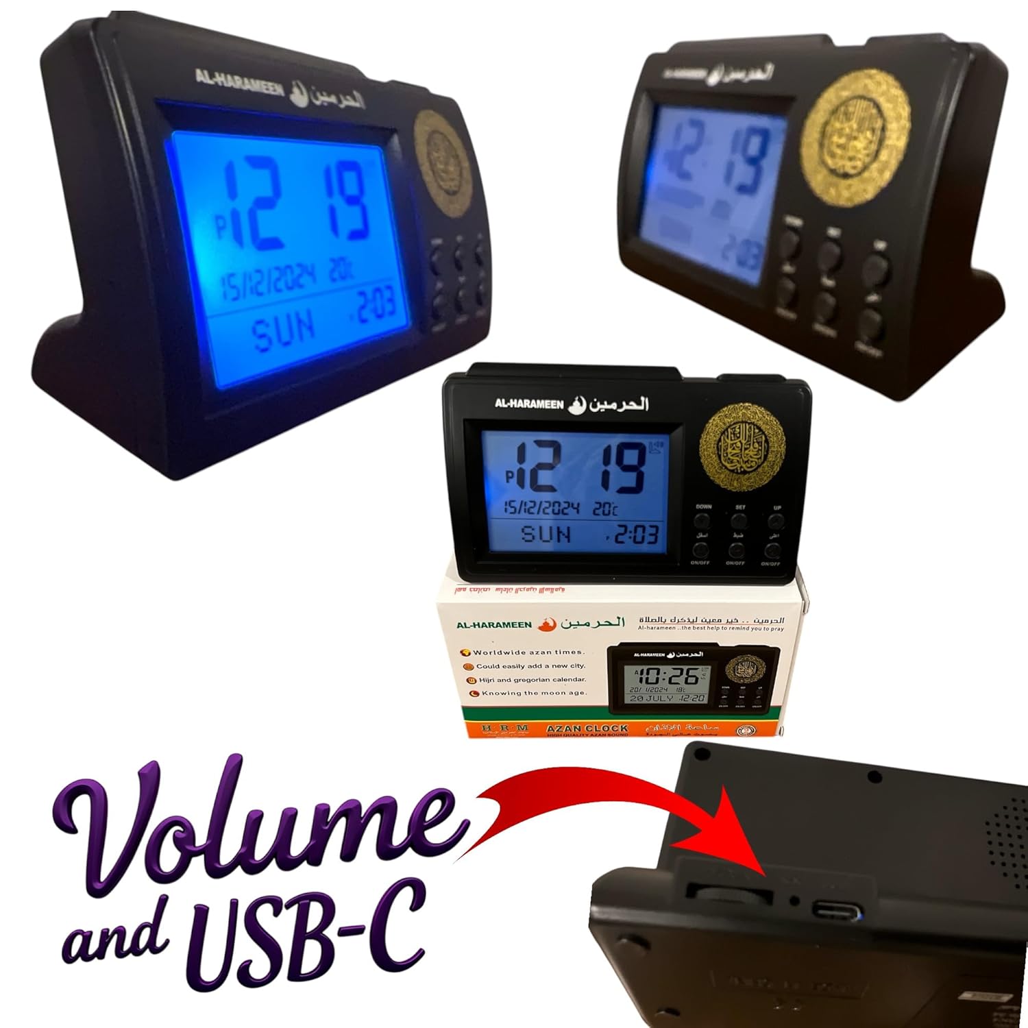 Alarm and Time Functions] – Apart from Azan times, the clock typically includes standard alarm functions, also useful for early morning (Tahajjud) or Fajr prayers including Shuroq