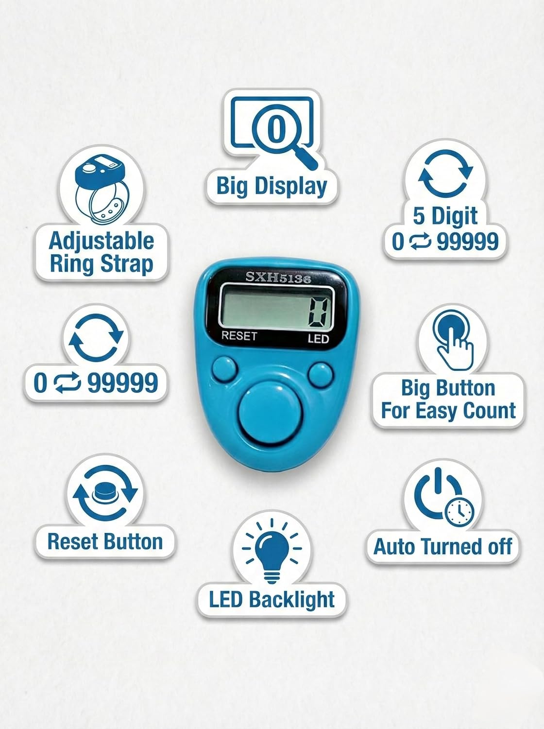 LED DISPLAY: Features a clear LED digital display that shows count numbers up to 99999, making it easy to read your tally count at a glance