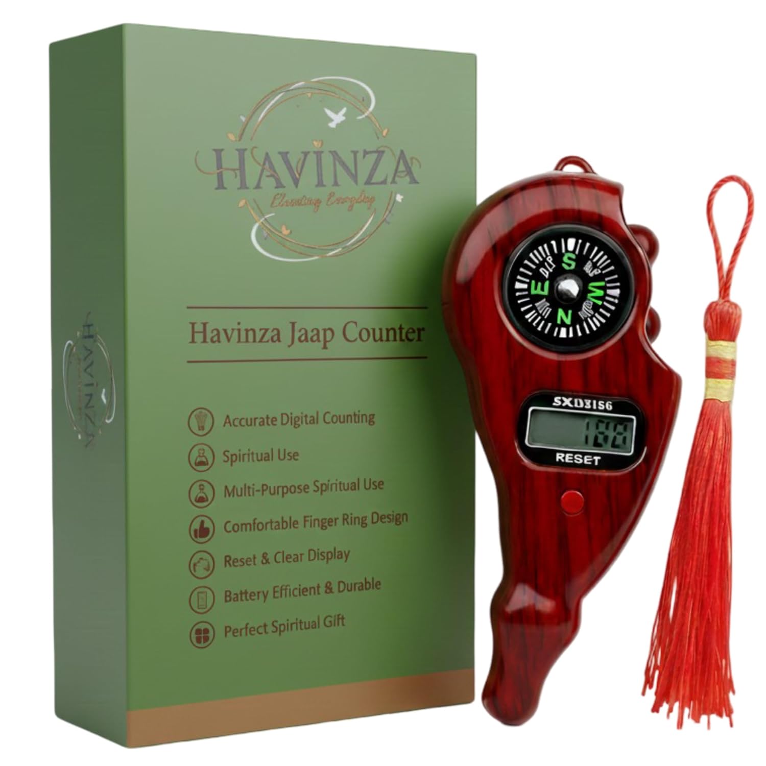Digital Jaap Counter Wooden Finish Finger Ring Tally Counter for Naam Jap Bhakti Pooja Bhajan Kirtan Japa Sadhana Meditation Yoga and Daily Dharmik Spiritual Practice Havinza – Special Edition