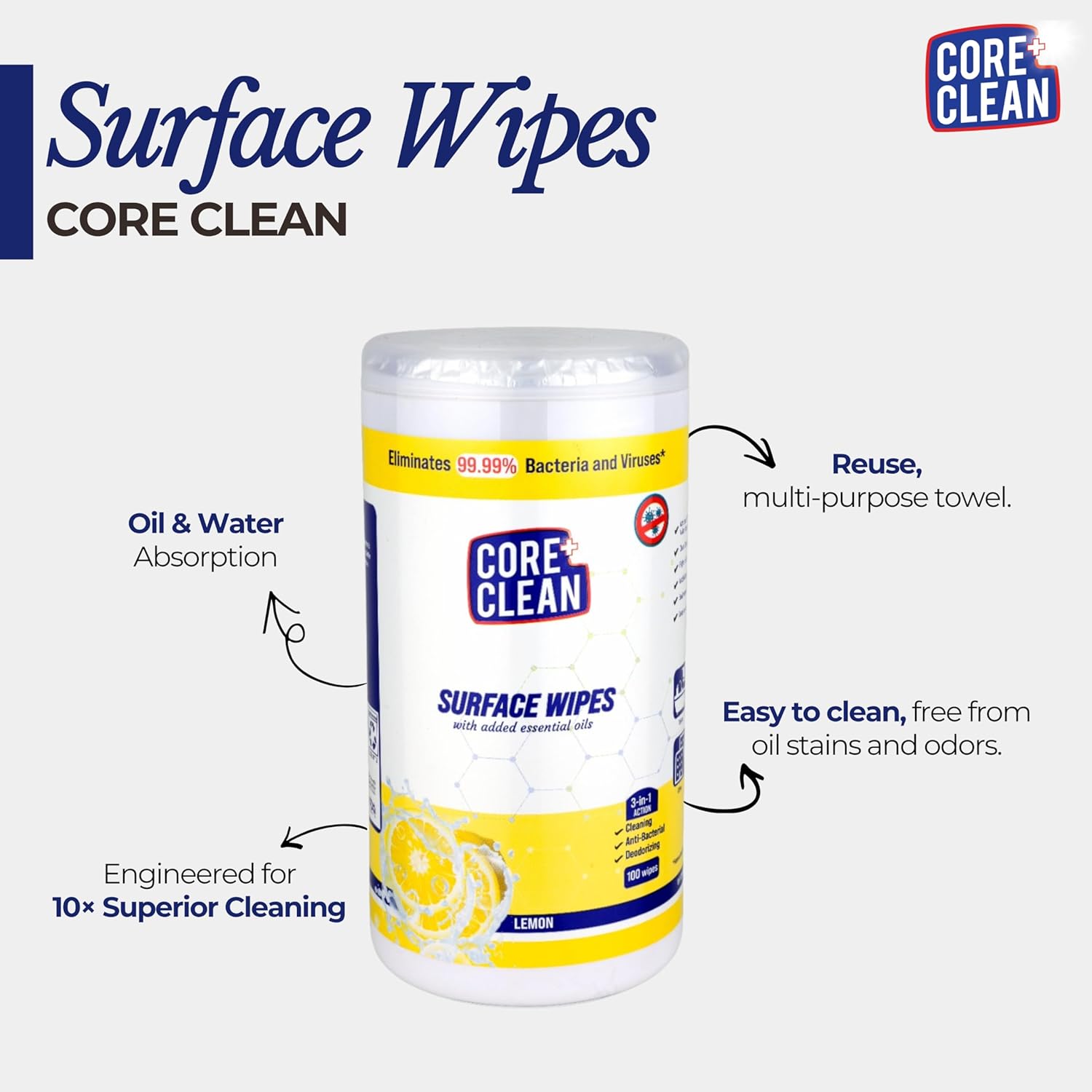 Package Content: 1 Surface Wipe Canister of 100 Wipes | Lemon Fragrance | Wipe Size: 7″ X 8″ inches