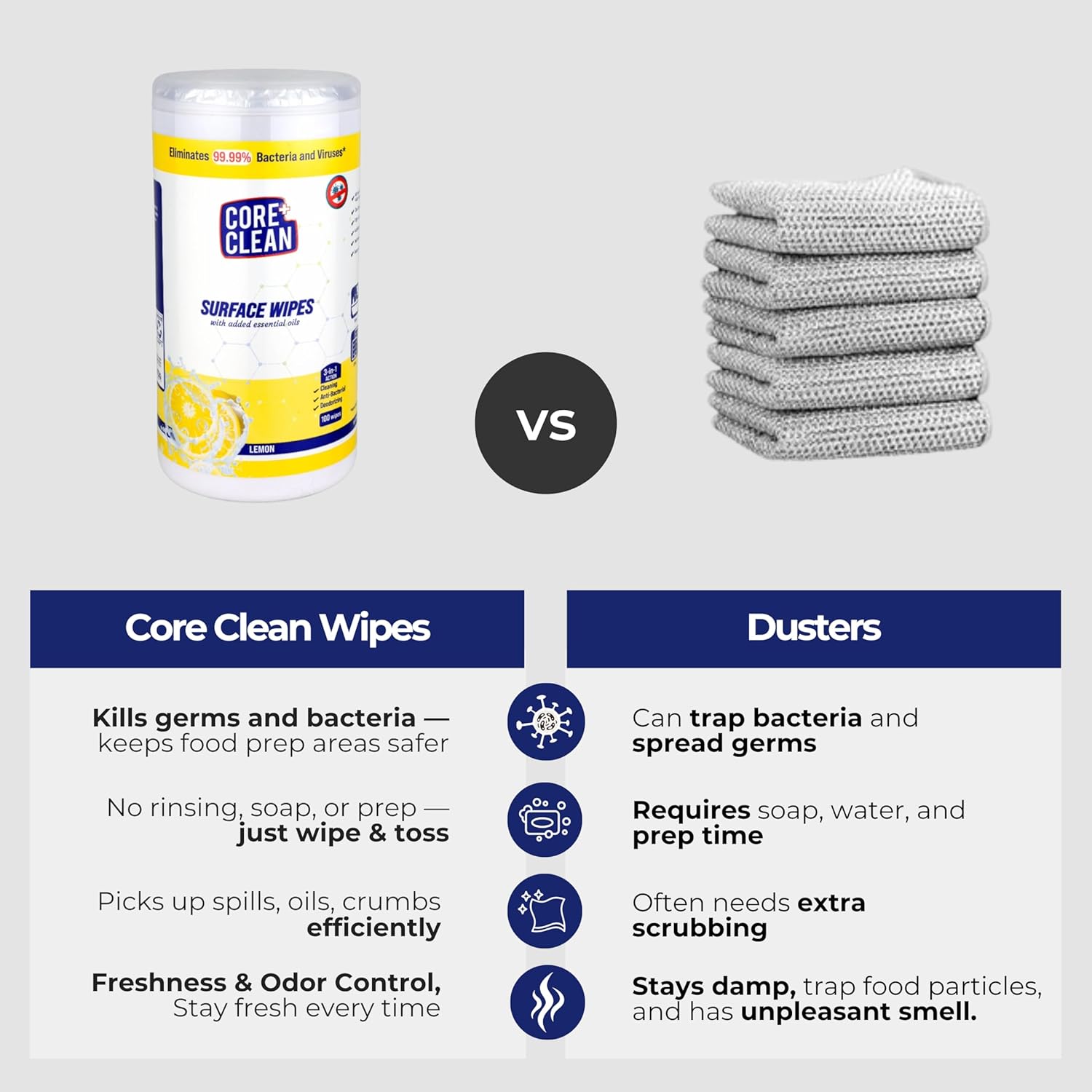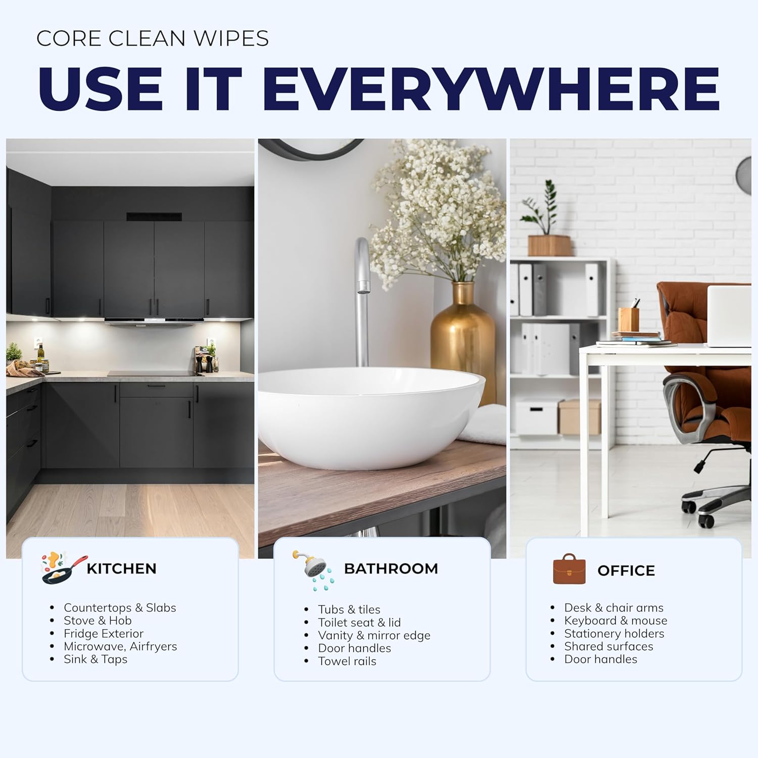 Cleans Multiple Surfaces: These multi-surface cleaning wipes conveniently tackle tough germs and messes on various surfaces, including kitchen and bathroom surfaces, as well as remotes, tablets, and smartphones.
