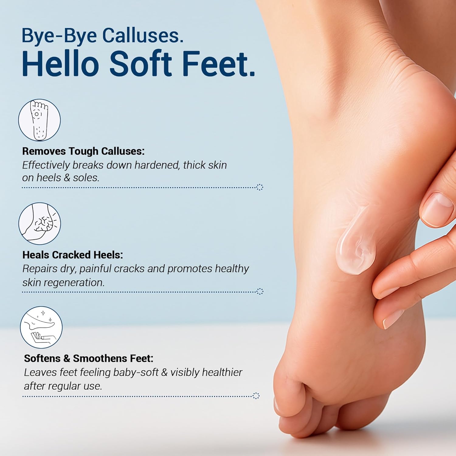 ✅ MULTIFUNCTIONAL & RELIABLE: Callus remover for feet helps in repairing the cracked feet, but its special formulation helps to exfoliate dead skin cells gently and break down rigid callus. It also helps in repairing cracked heels and eliminates corns giving relief in foot pain.