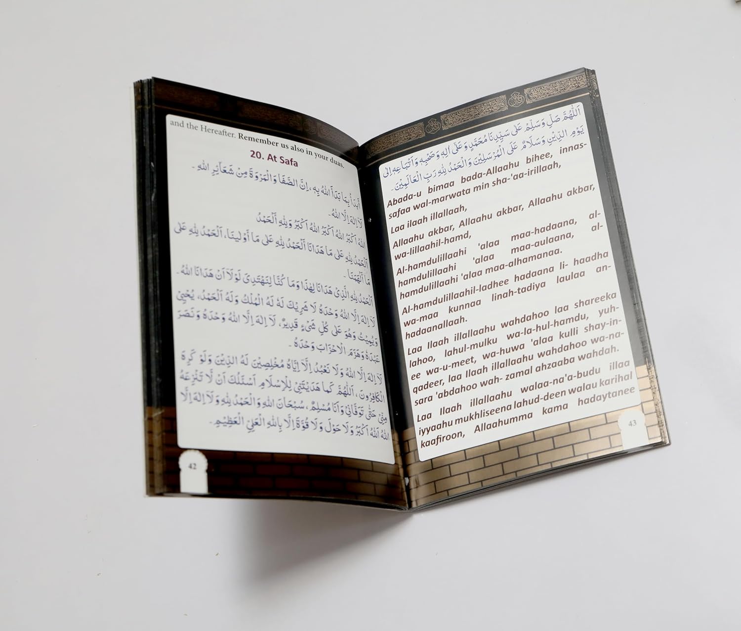 This book is a compilation of supplications (duas) to be recited during the Hajj and Umrah pilgrimage. It covers all important duas from the moment you leave home, throughout your journey till you return home. These include duas to be recited during Ihram, sighting the Kaaba, Tawaf, Arfa, Mina, entering Madina, etc. This book has a beautiful black & golden cover resembling the holy Kabah. It also contains images on some pages. It’s a great book to take along on the journey to help pilgrims connect with their spirituality and make their pilgrimage more meaningful.