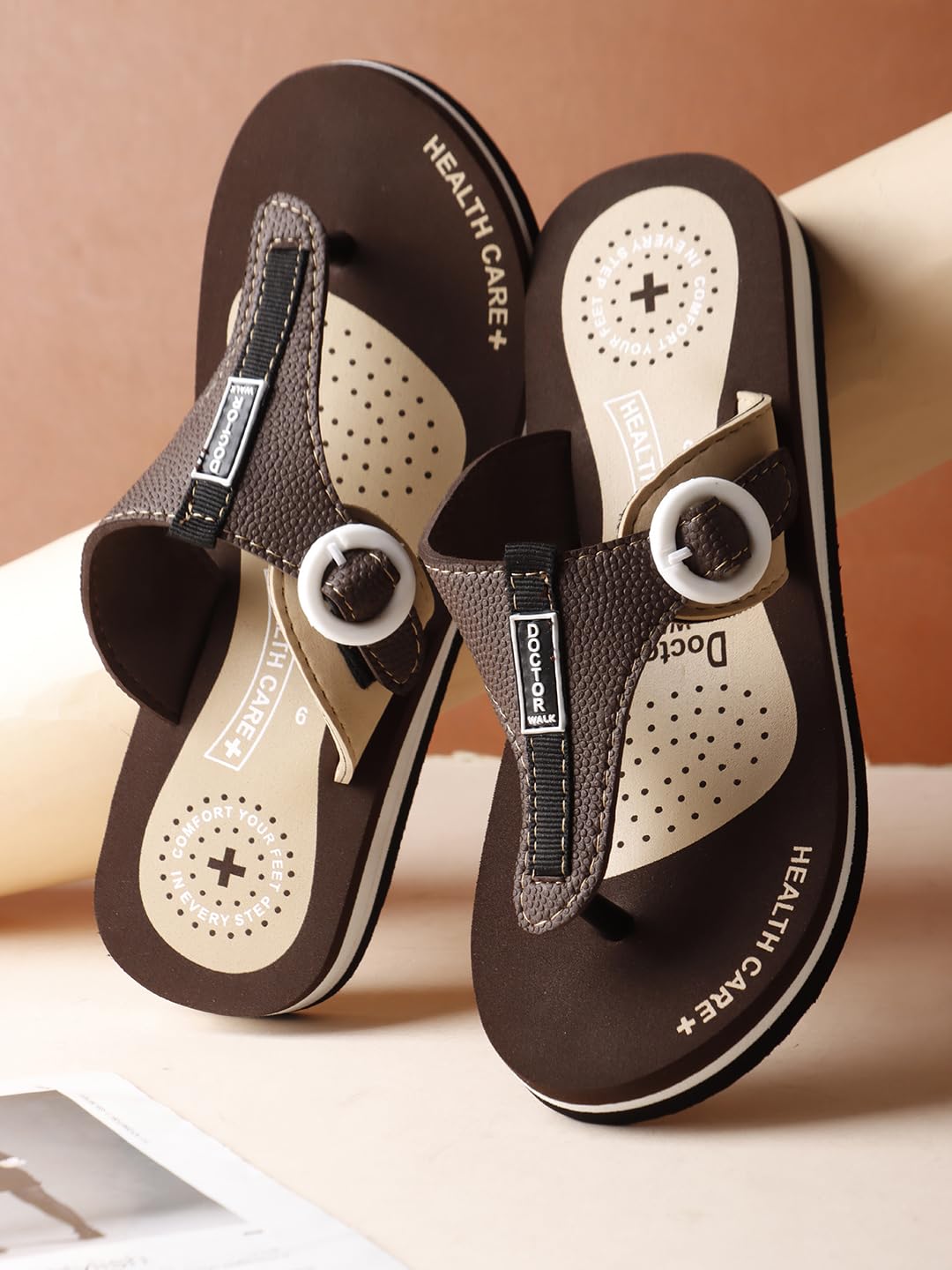Duosoft Flip Flop for Women | Soft Comfortable | Breathable | Fashionable | Stylish | Trendy | Super soft | Lightweight | Anti-Slip Sole | Indoor & Outdoor |DW-34-Brown