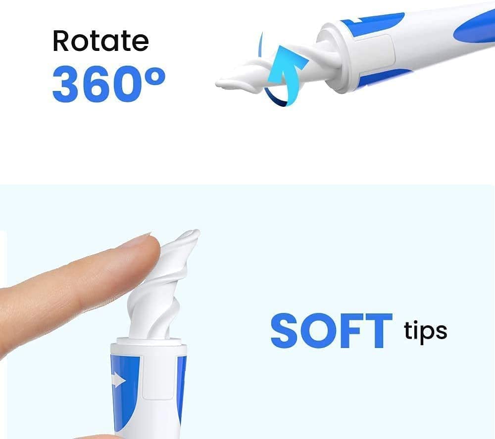 Ear Wax Removal Ear Cleaner Earwax Remover Spiral Soft Silicone Safe Upgraded Smart Earwax Removal Tool Swab Kit with 16 Replacement Tips for Adults & Kids