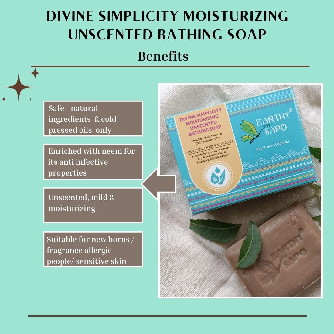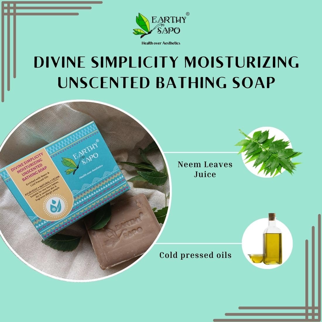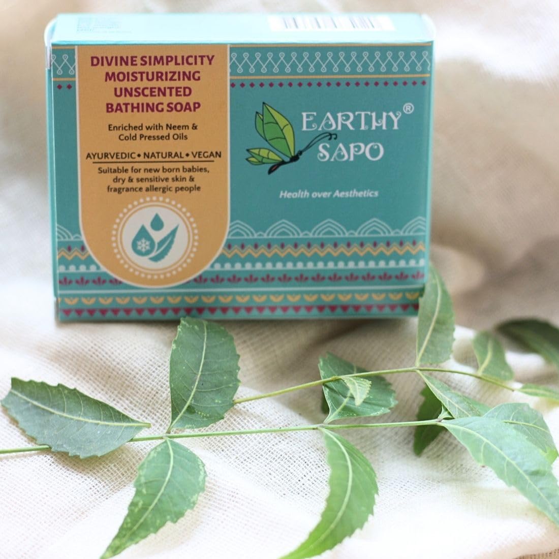 Earthy Sapo Handmade Divine Simplicity Unscented Moisturizing Bathing Soap, 100g, Pack of 2 | Natural Neem Soap for Gentle Cleansing | Ideal for Babies and Sensitive Skin | Vegan and Eco-Friendly