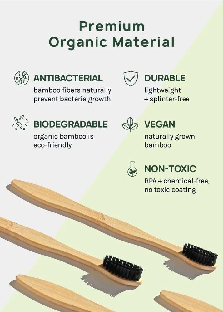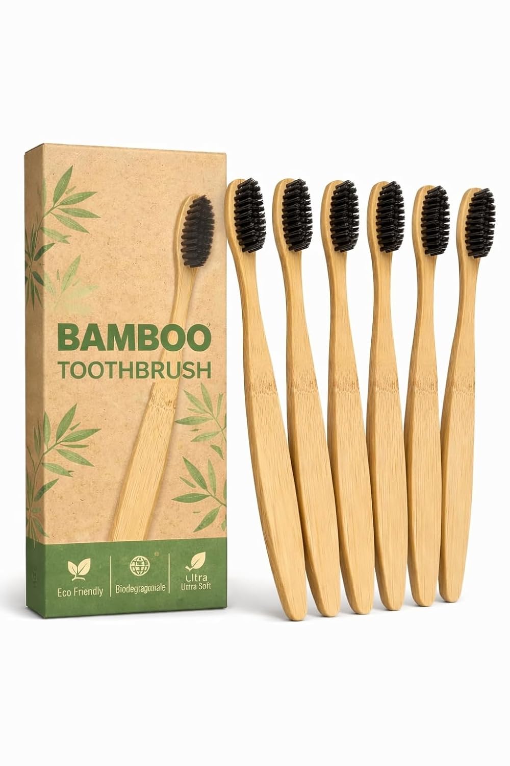 Make your daily oral care routine safer for you and better for the planet with this Eco Friendly Bamboo Toothbrush Pack of 6. Designed for adults, these toothbrushes feature ultra soft bristles that gently clean teeth and gums while helping reduce plaque without causing irritation. Each toothbrush is made from natural, biodegradable bamboo, offering a strong yet lightweight handle with a comfortable grip. Unlike plastic toothbrushes, this plastic-free wooden toothbrush is an environmentally responsible choice that helps reduce plastic waste in everyday life. The ultra soft bristles are ideal for people with sensitive teeth and gums, making them suitable for daily use. The pack of 6 is perfect for families, travel, or long-term use, ensuring hygiene and convenience at the same time. Choose a smarter, sustainable alternative for your oral hygiene with this biodegradable bamboo toothbrush set—good for your smile and gentle on the environment.