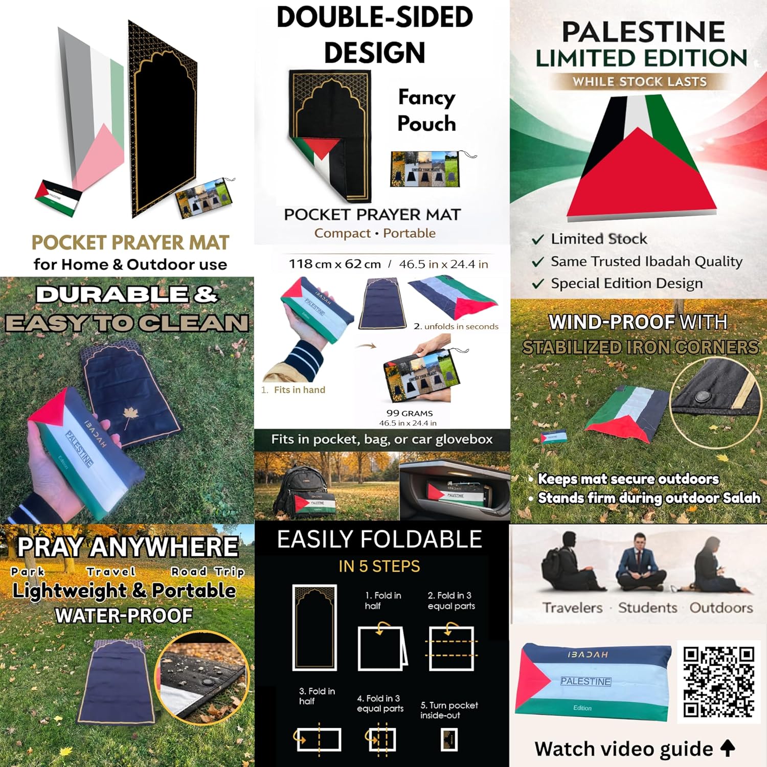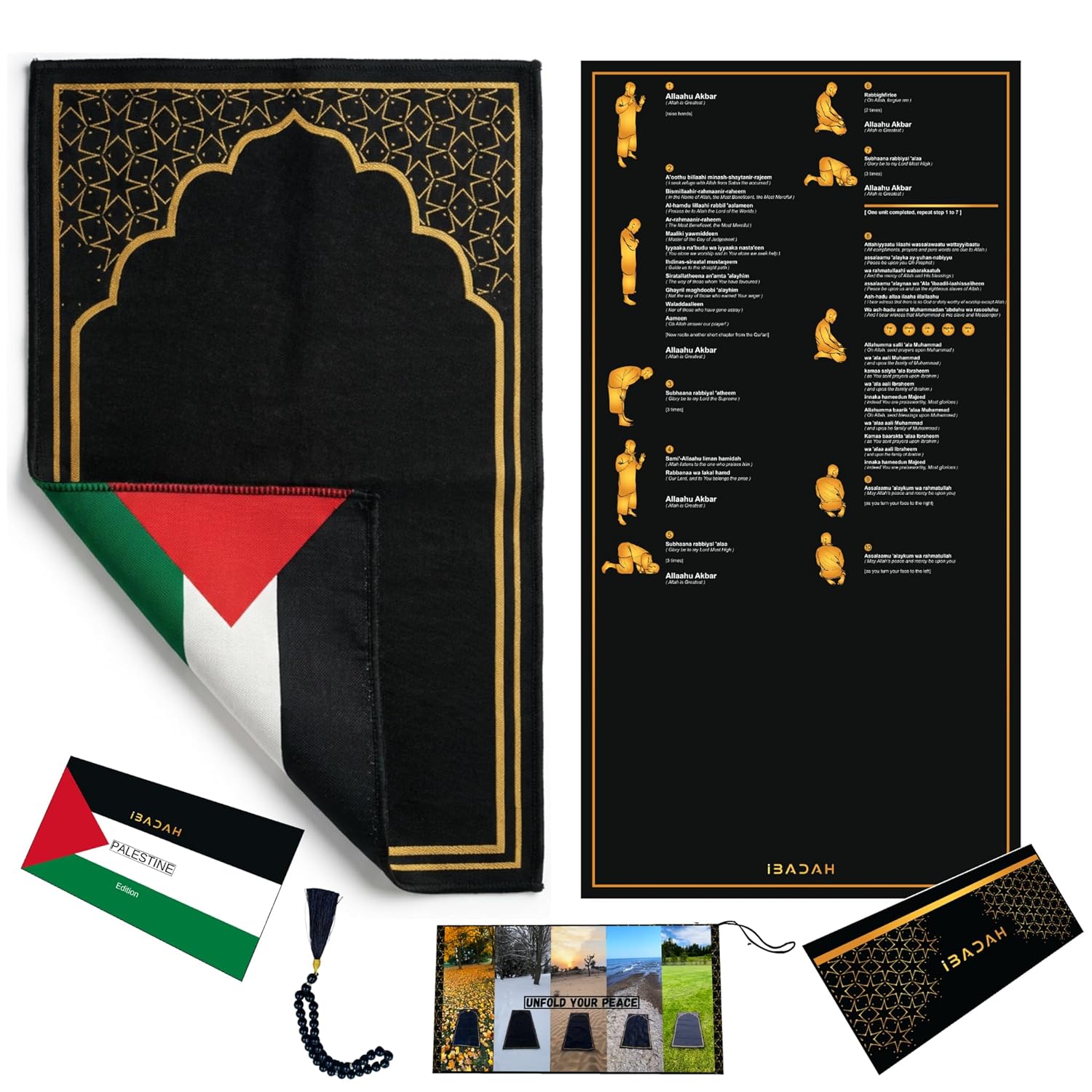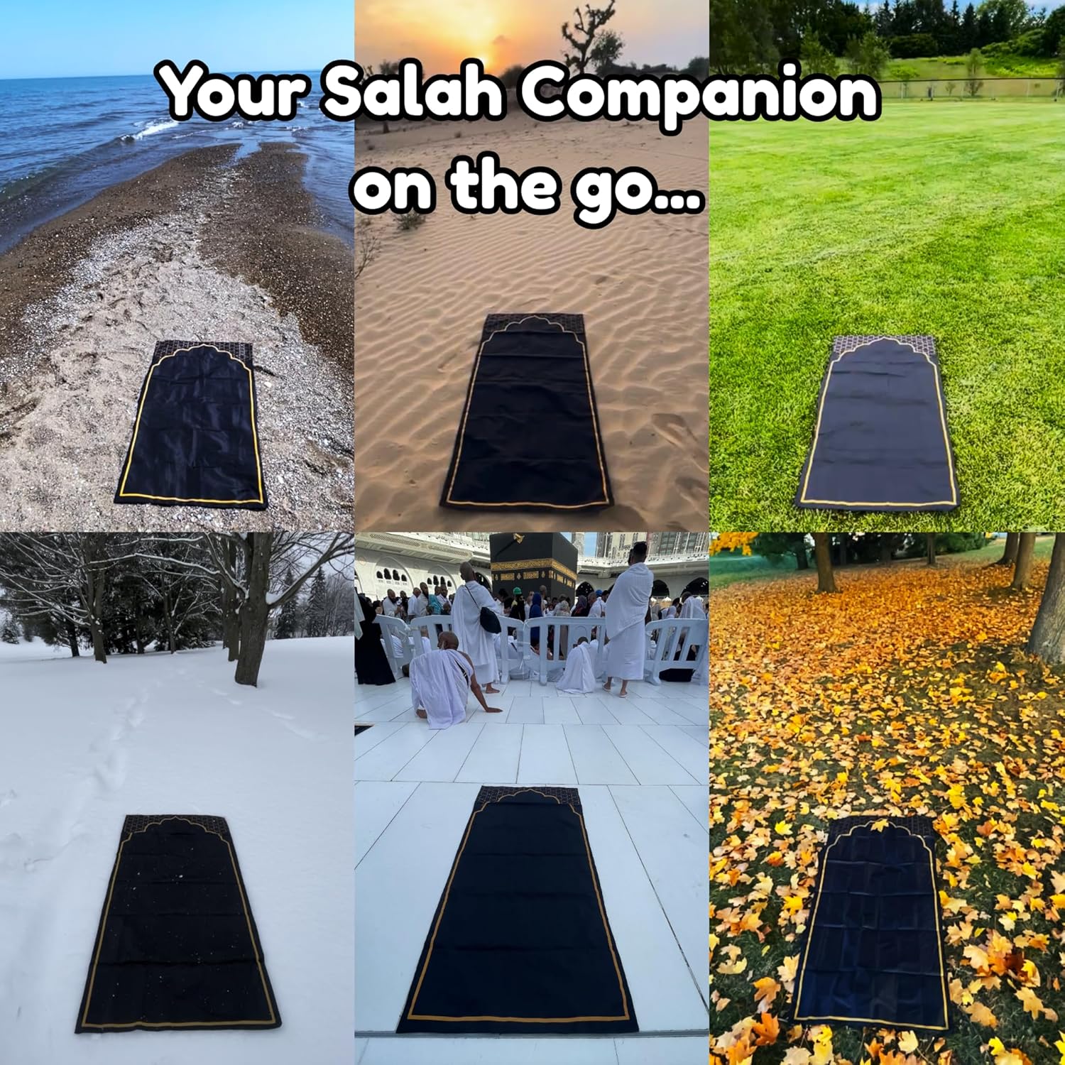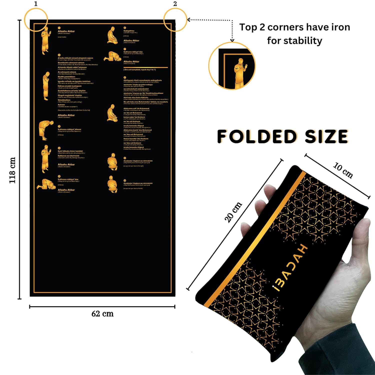 Portable: Easily folds and fits into the pocket attached on the prayer mat!