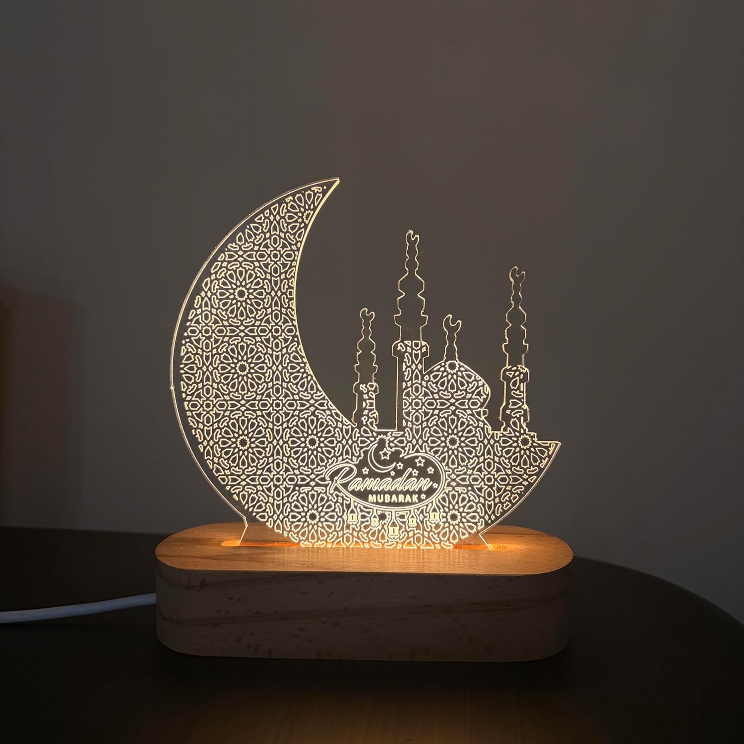 🎁 Perfect Islamic Gift Choice: A thoughtful Ramadan gift and Eid gift for family, ideal for Ramadan return gift ideas, Ramadan gifts for friends, and Eid home décor. This elegant Islamic festival decoration doubles as a warm Ramzan decoration light and Eid night lamp, enhancing Muslim homes with soothing crescent moon mosque lighting décor—perfect for Eid, Ramadan, housewarming, anniversaries, birthdays, and festive gifting.