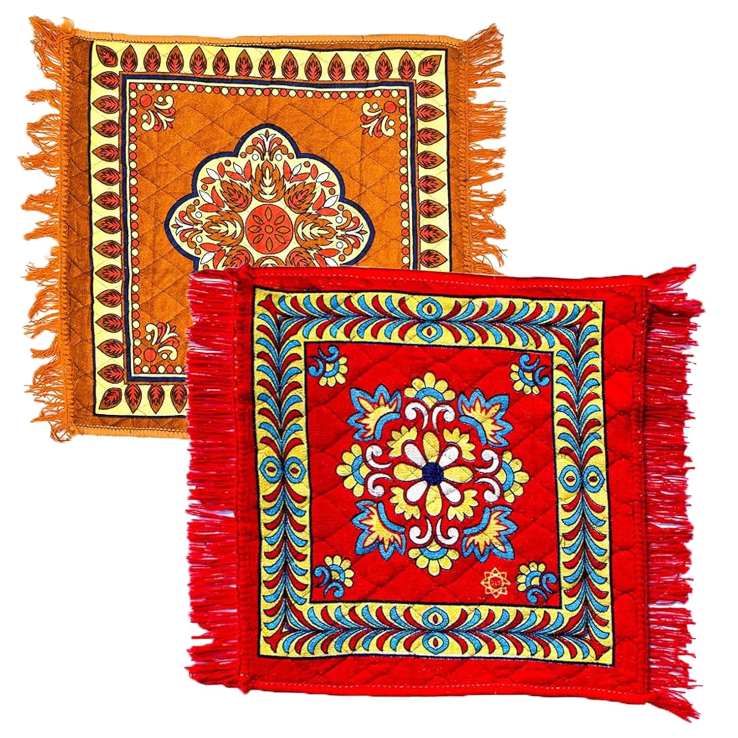 HOMITURE Introducing the Elegant Anti-Slip Pooja Aasan Combo, an ideal sitting mat for your sacred rituals and moments of peace. Perfect for occasions like Diwali, Pooja, Kanya Bhoj, and also for yoga and meditation, this pack of 2 square floral mats provides the perfect blend of comfort and function. Each mat serves as a stable aasani offering an anti-slip surface for a secure bethak during your spiritual activities. These pooja chatai are easy to clean and come in assorted color patterns, making them both practical and beautiful. Whether you’re using them as a prayer mat or for daily meditation, these Asnii mats are designed to bring elegance and ease to every moment.