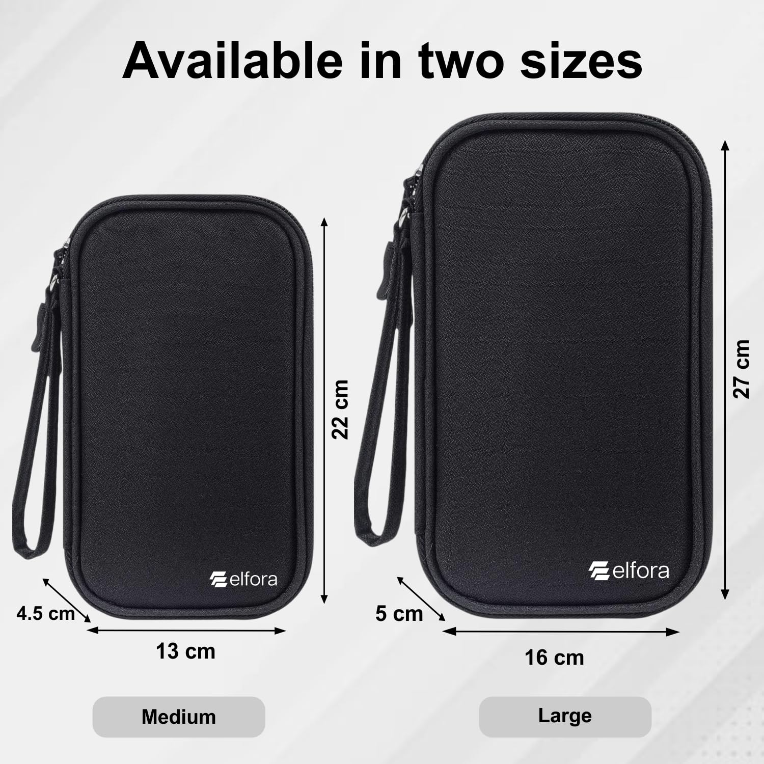 Elfora Cable Organizer Pouch | Travel Organiser Bag | Double Layer Storage for USB Cables, Chargers, Earphone, Power Bank, Hard disc & Other Accessories | Durable Nylon Case with Mesh Pockets (Black)