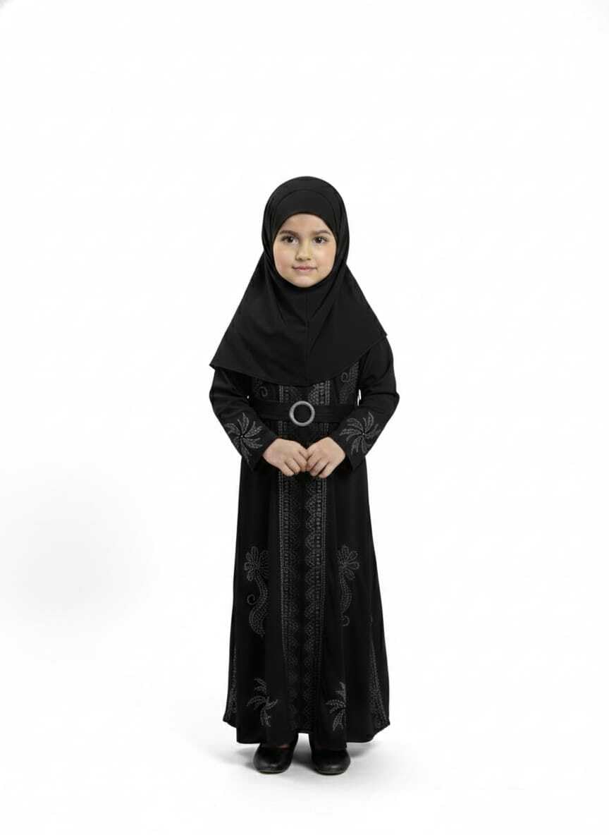 Black Embroidered Abaya Burkha Set for Girls. Designed with soft, breathable and skin-friendly fabric, this burkha ensures comfort for all-day wear. The elegant embroidery detailing adds a stylish and premium touch, making it perfect for both daily use and special occasions. This set includes a matching dupatta and niqab, creating a complete Islamic outfit that looks neat, modest and fashionable. Lightweight material allows easy movement, making it suitable for school, madrasa, mosque visits, Eid, Ramadan and family gatherings. With modern design and traditional modesty, this Abaya is the perfect choice for gifting or regular wear. ✨ Highlights: Soft, breathable and comfortable material Beautiful embroidery work for a premium look Comes with matching dupatta and niqab Full coverage, modest and stylish design Suitable for daily wear, festive wear and prayer Tags Kids Burkha Girls Burkha Abaya for Kids Embroidery Burkha Black Abaya Kids Hijab Set Kids Kids Niqab Muslim Wear Kids Girls Hijab Dress Islamic Clothing Ramadan Dress Kids Eid Wear Girls Modest Wear Kids Prayer Dress Kids Full Coverage Dress Girls Dupatta Set Traditional Wear Kids Fashion Muslim Girls Abaya Set Embroidered Abaya Woman Nakab Kids naqab