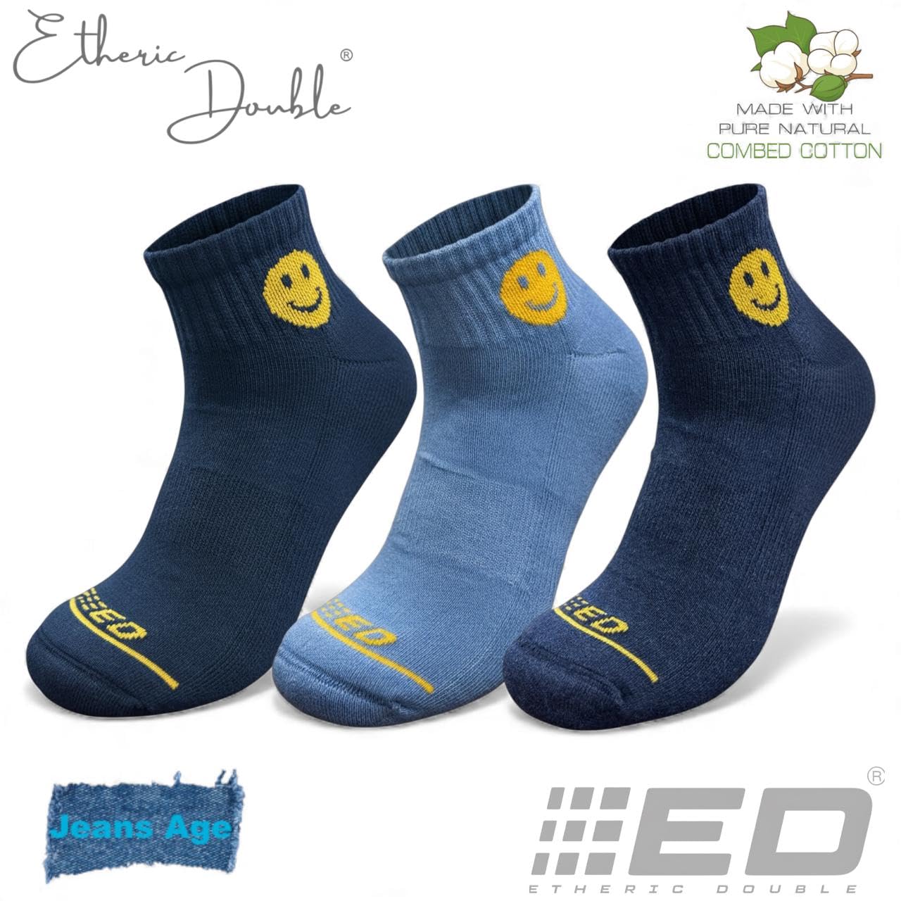 Etheric Double Half Terry Pure Combed Cotton Mid-Ankle Socks | Antibacterial, Arch Support, Cushioned Footbed | Jeans Shade Smiley Design | Men & Women | Pack of 3