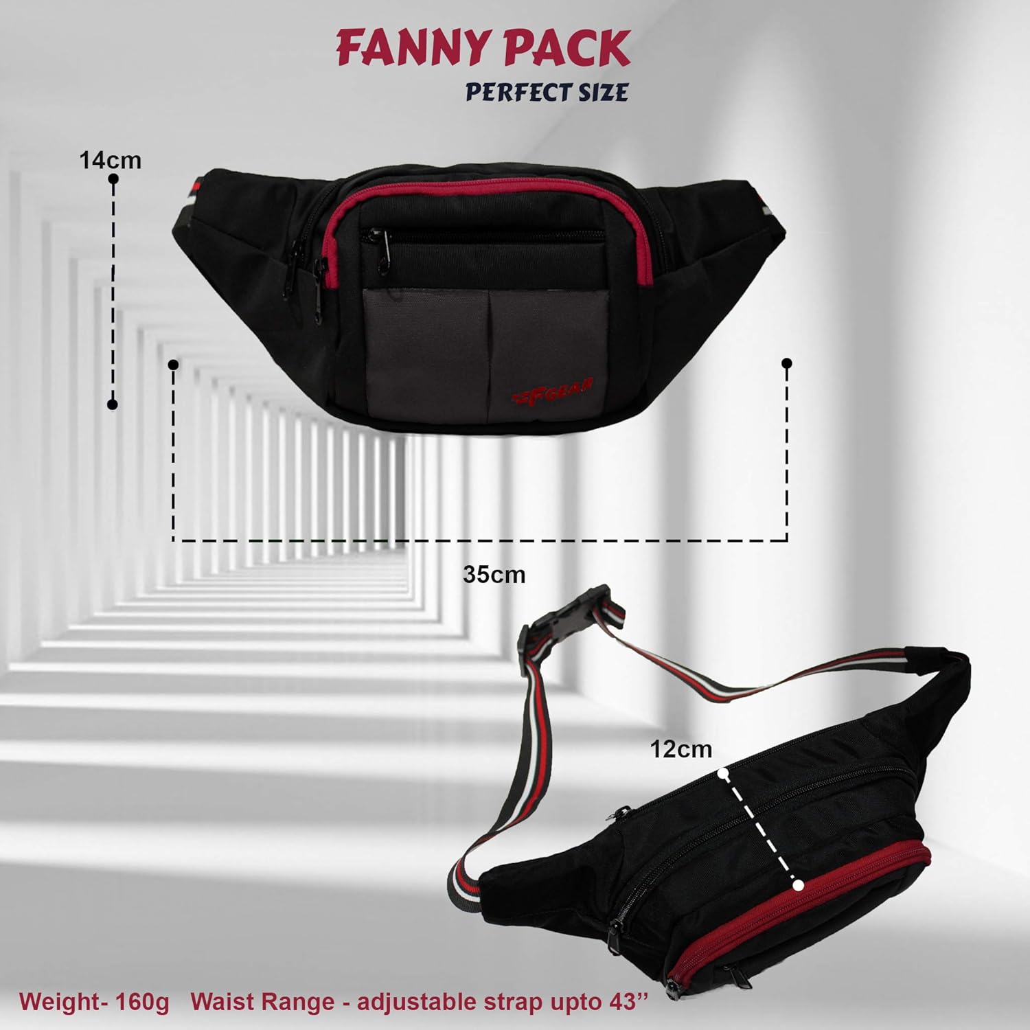 F Gear Lattitude Unisex |Waist Bag|Waist Pouch|Crossbody|Fannypack|Chest Bag for Cycling Outdoor Hiking Travel Running Jogging|Multi-Pockets|Belt Pouch|Bum Bag|Zip Pouch for Men Women Boys (Black Red)