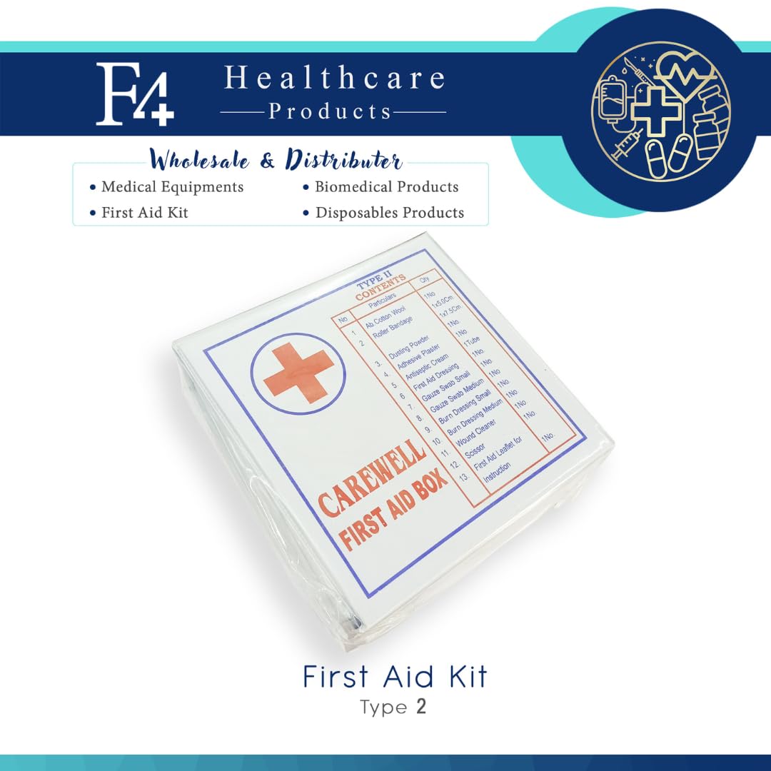 F4 HEALTHCARE First Aid Box, Type K Contents, Medical Emergency Kit, White Case