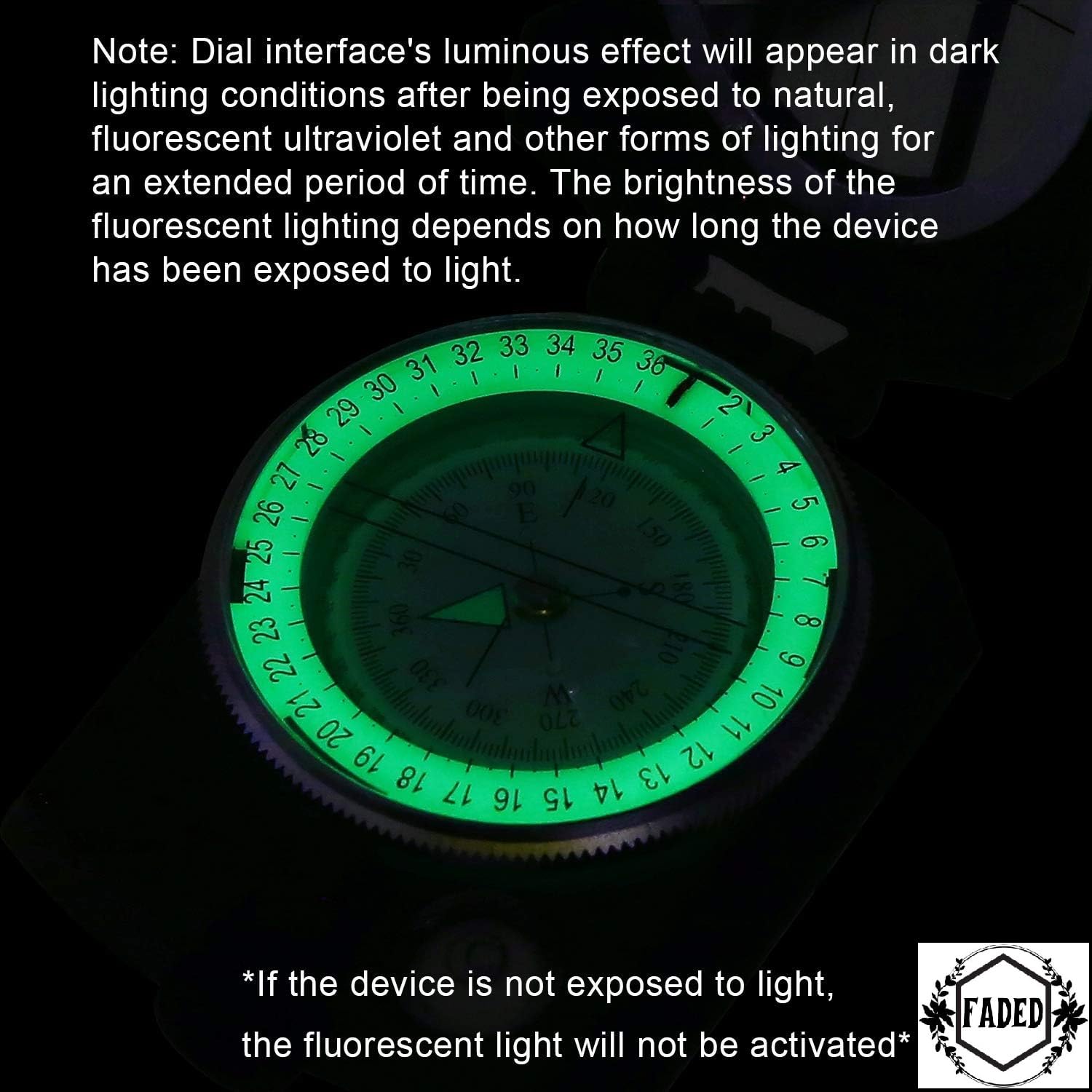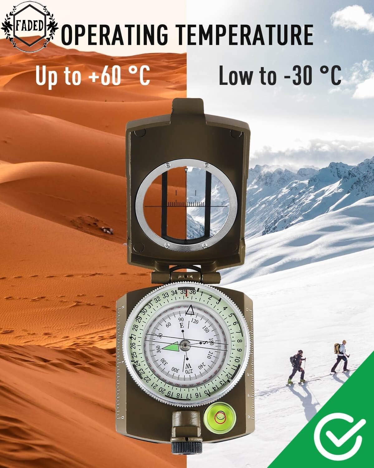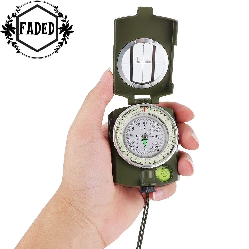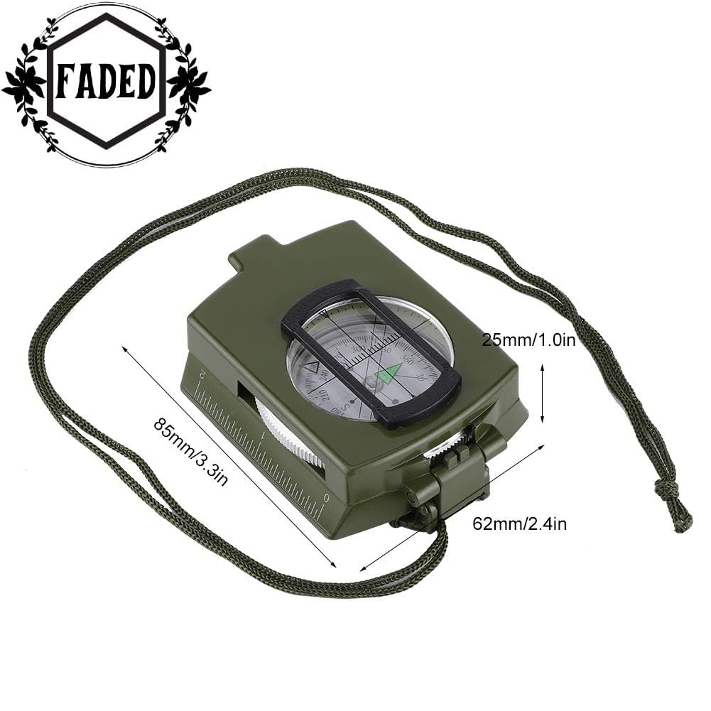FADED Professional Lensatic Sighting Compass with Carrying Case | Waterproof & Shakeproof Military-Style Compass for Hiking, Camping, Outdoor Survival & Adventure (Army Green)