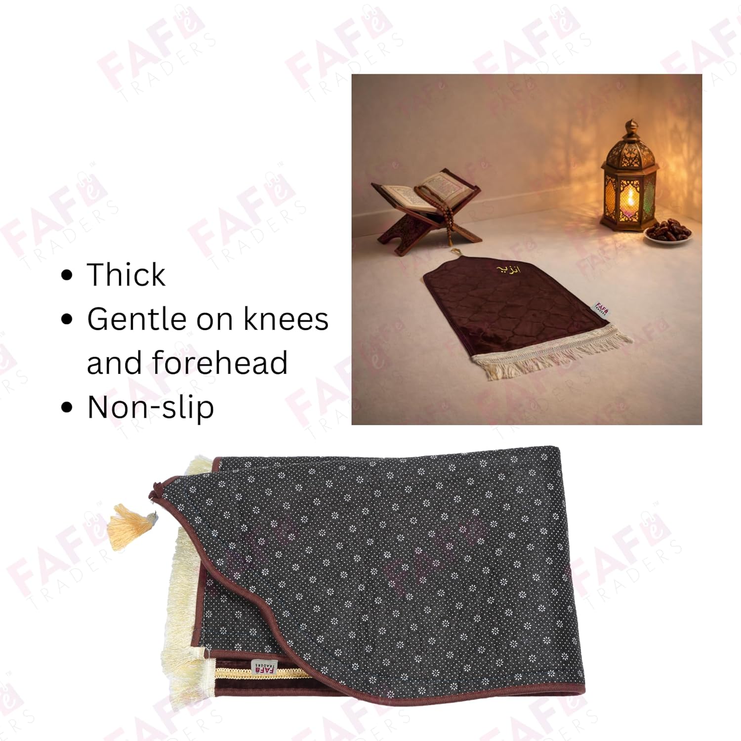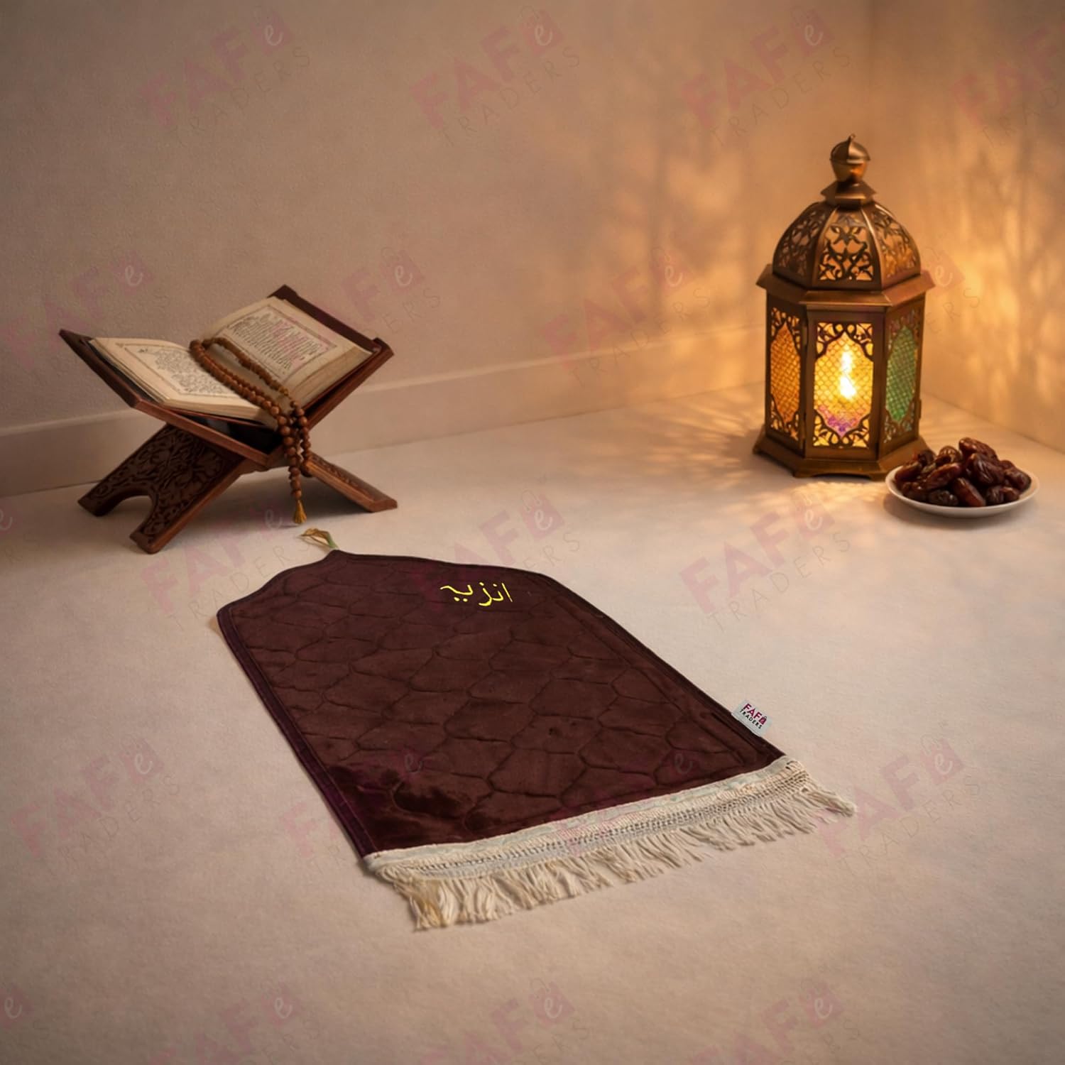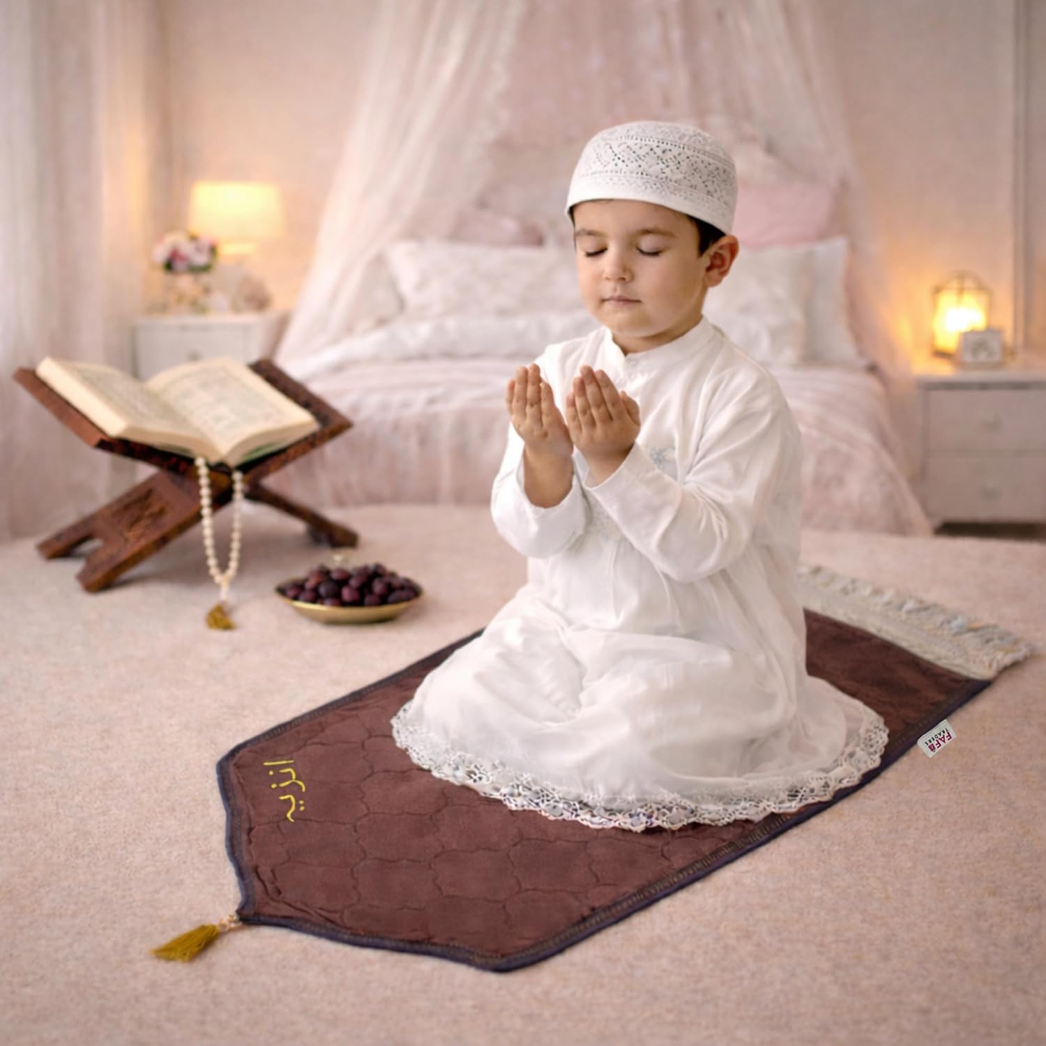 FAF Custom Baby Janamaz Prayer Mat | Customized Kids Islamic Prayer Rug for Boy & Girl (1 to 10) | Soft Thick Namaz Mat, Portable Travel Janemaaz | Mussalla for Home, Mosque, Hajj & Umrah (Brown)