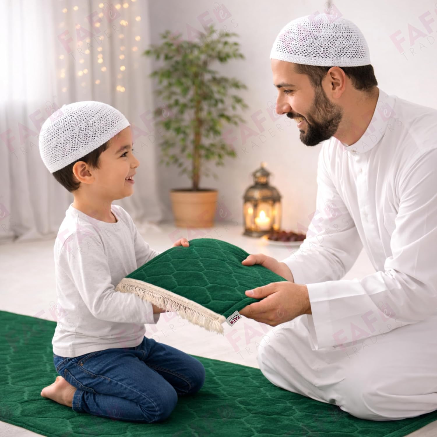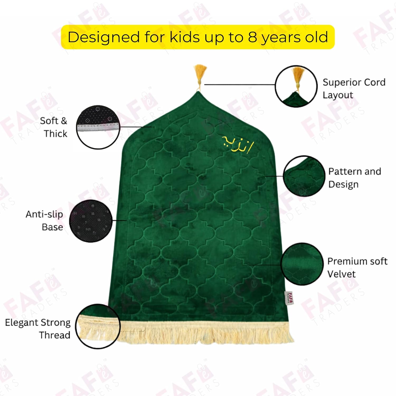 FAF Custom Baby Janamaz Prayer Mat | Customized Kids Islamic Prayer Rug for Boy & Girl (1 to 10) | Soft Thick Namaz Mat, Portable Travel Janemaaz | Mussalla for Home, Mosque, Hajj & Umrah (Green)