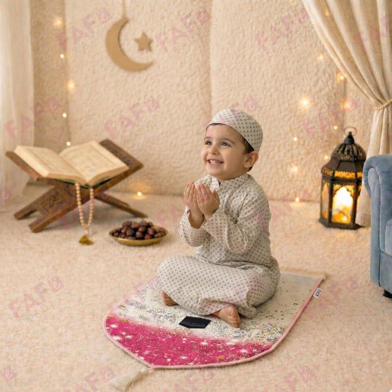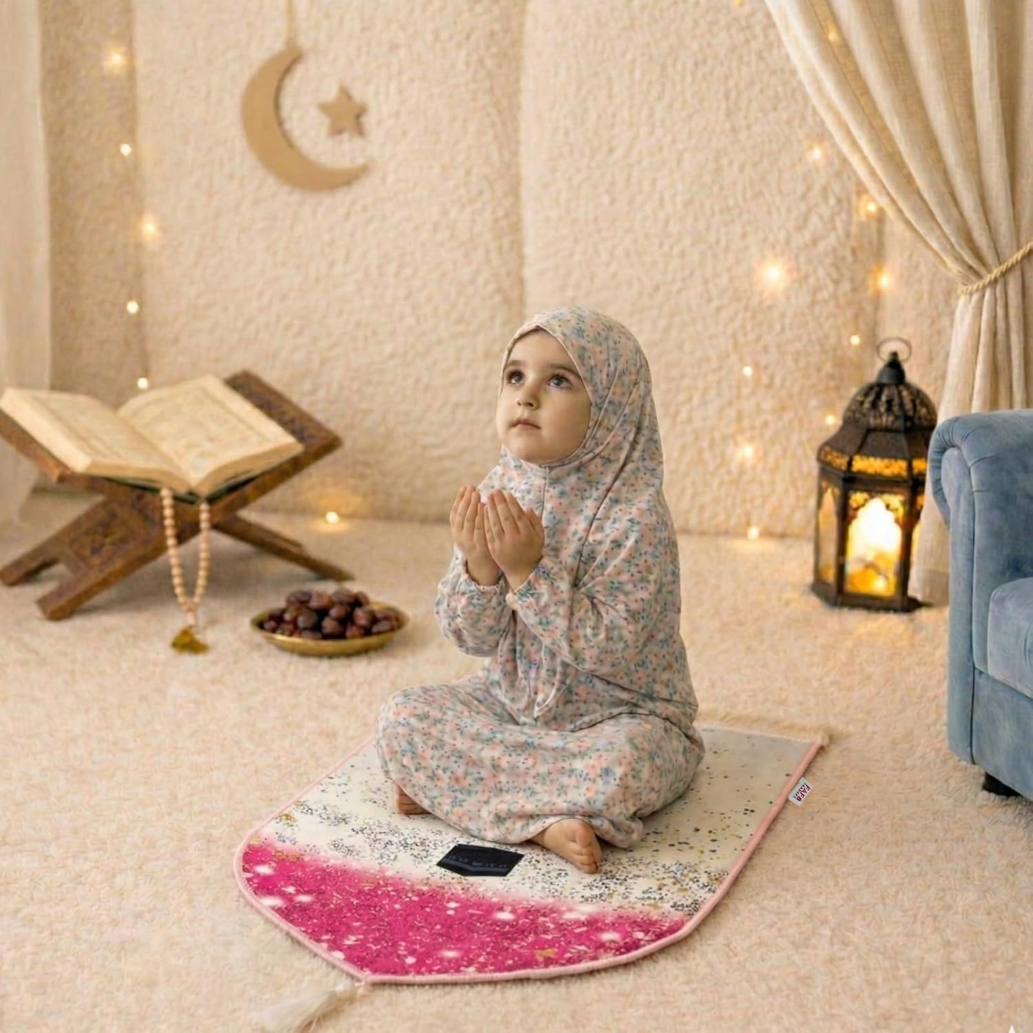 BEST GIFT FOR RAMZAN & ISLAMIC LEARNING : Beautiful fancy janamaz, perfect for Ramzan, Eid, Quran learning, kids prayer practice. A best quality Islamic prayer rug for children.