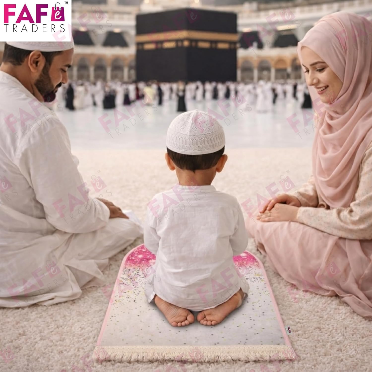 FAF Girl & Boy Velvet Prayer Mat | Children janamaz Prayer Rug for Kids (upto 3 years) | Soft Thick Namaz Mat, Portable Travel Janemaaz | Mussalla for Home, Mosque & Ramzan, Hajj and Umrah (Duo color)