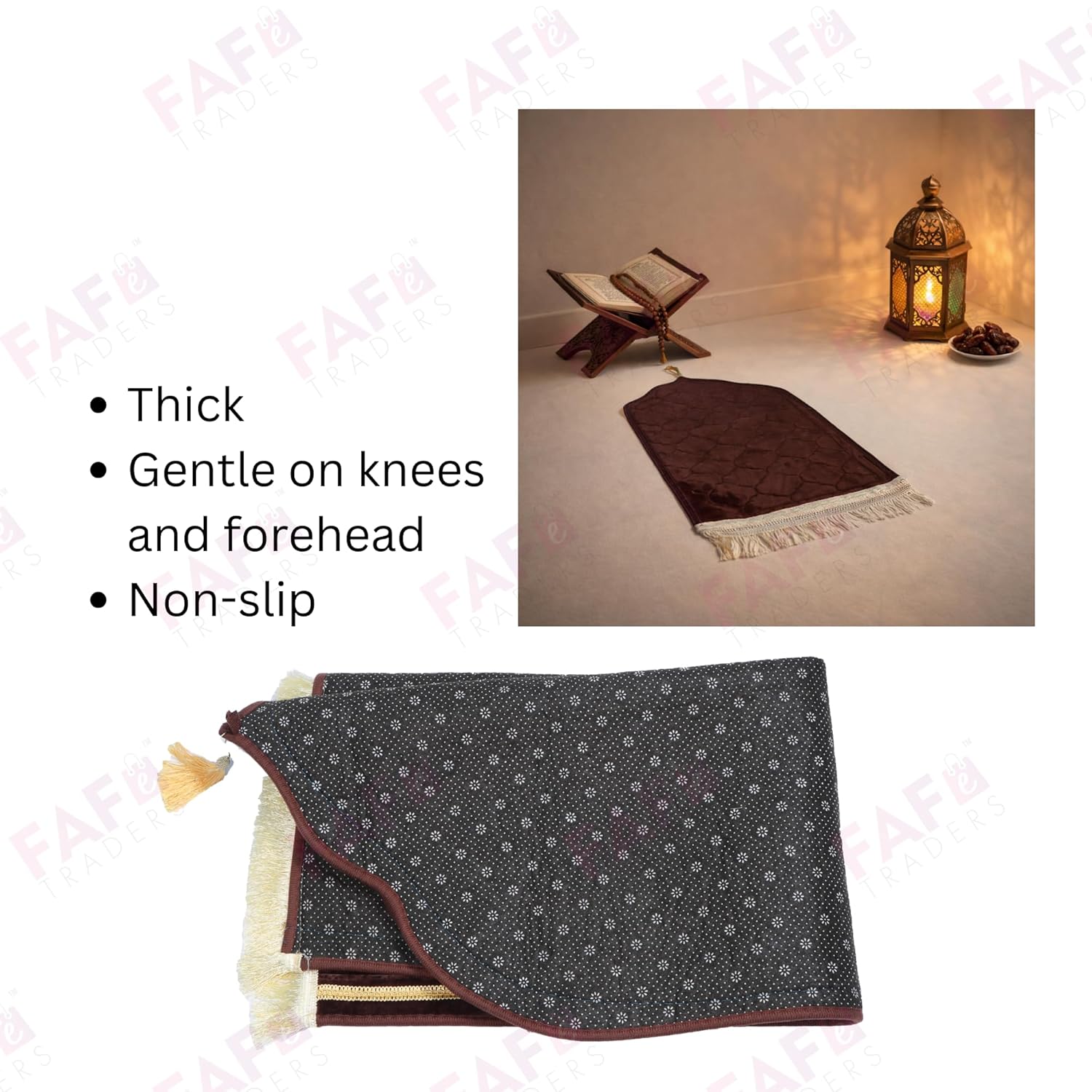 FAF Kids Janamaz Velvet Prayer Mat for Children (Age 1–10) | Soft Small Islamic Prayer Rug for Boy & Girl | Lightweight Portable Travel Janamaz for Home, Mosque & Namaz (Brown)