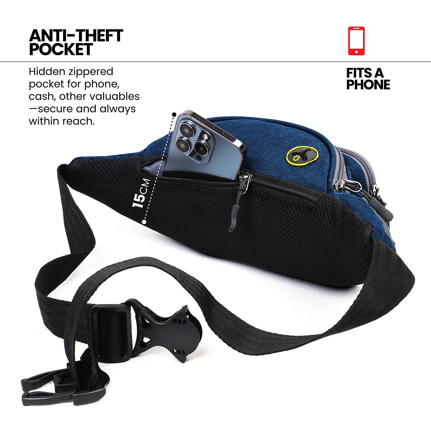 FATMUG Waist Pouch, Money Belt Pouch for Travel, Running, Jogging, Cycling, Hiking, Outdoor- Navy Blue
