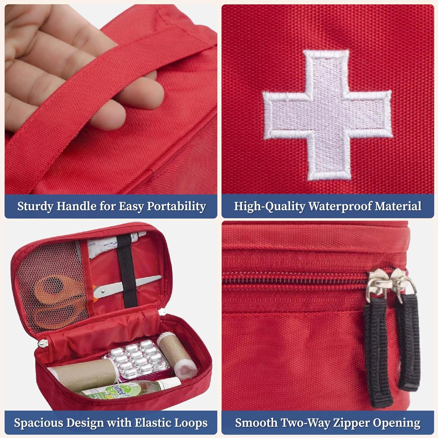 🩺 Spacious Multi-Compartment Medical Storage Designed with multiple inner sections, mesh pockets and elastic loops, this first aid kit organizer keeps medicines, bandages, thermometers and emergency supplies neatly arranged and easy to access during urgent situations at home or travel.