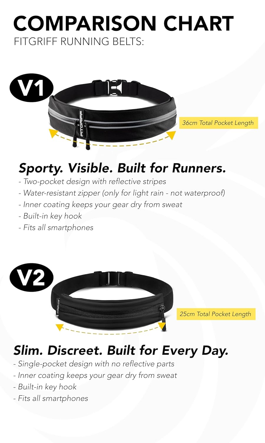 Fitgriff® Running Belt for Phone, Waist Bag for Running, Sports Fitness Bum-Bag (Waterproof) – for Women and Men (25″ – 43″ Waist Size, Black)