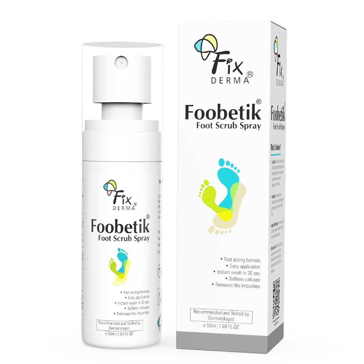 Fixderma Foobetik Foot Scrub Spray with Lactic Acid | 30 sec Foot Facial Spray | Foot Scrubber for Dead Skin | Callus Remover Spray | Heel Scrubber for Feet|Instantly Smooth & Soft Feet – 50ml