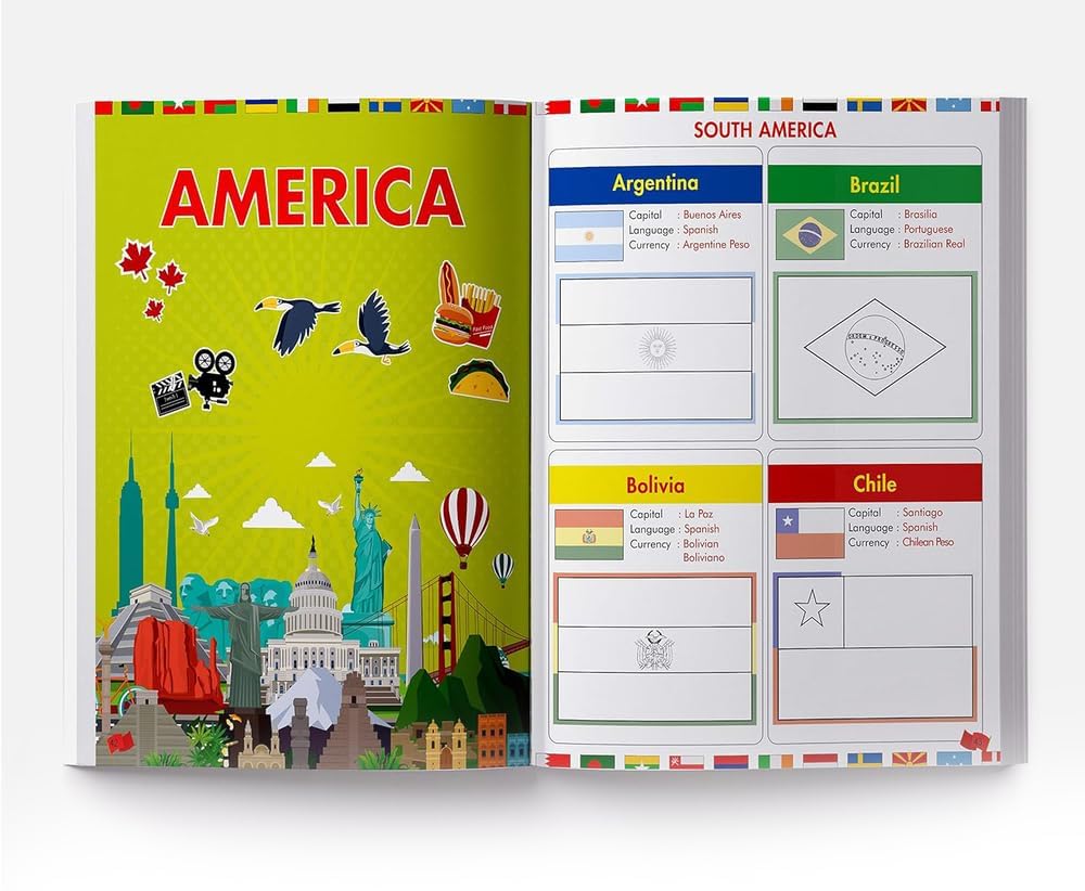 This is a one-in-all book that brushes up a child’s knowledge of countries, capitals, flags and currencies of the world. A child can identify and paste the sticker flags first and then copy color the flag in the space provided. This book is great for developing memory, and kindling curiosity. Its engaging, activity-based approach ensures quick learning.