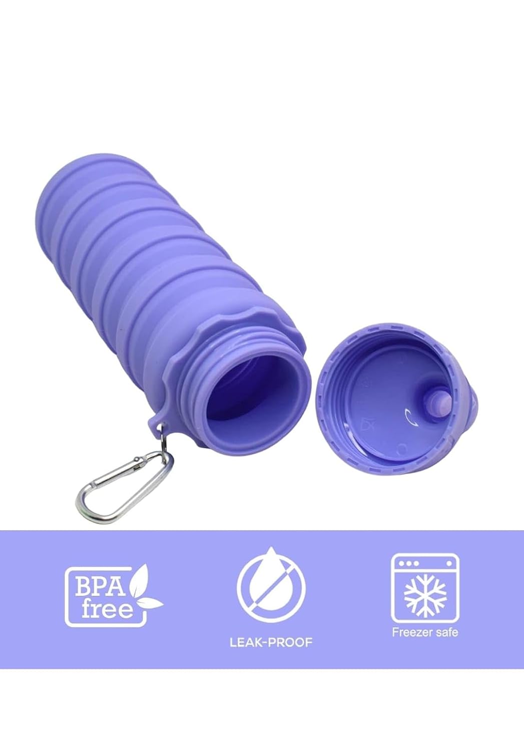 Foldable Silicone Water Bottle – Purple | Collapsible Leakproof Travel Bottle for Gym Office School | Portable Lightweight Reusable Bottle for Cycling Hiking Camping Outdoor Sports Use Gear | 600 ml