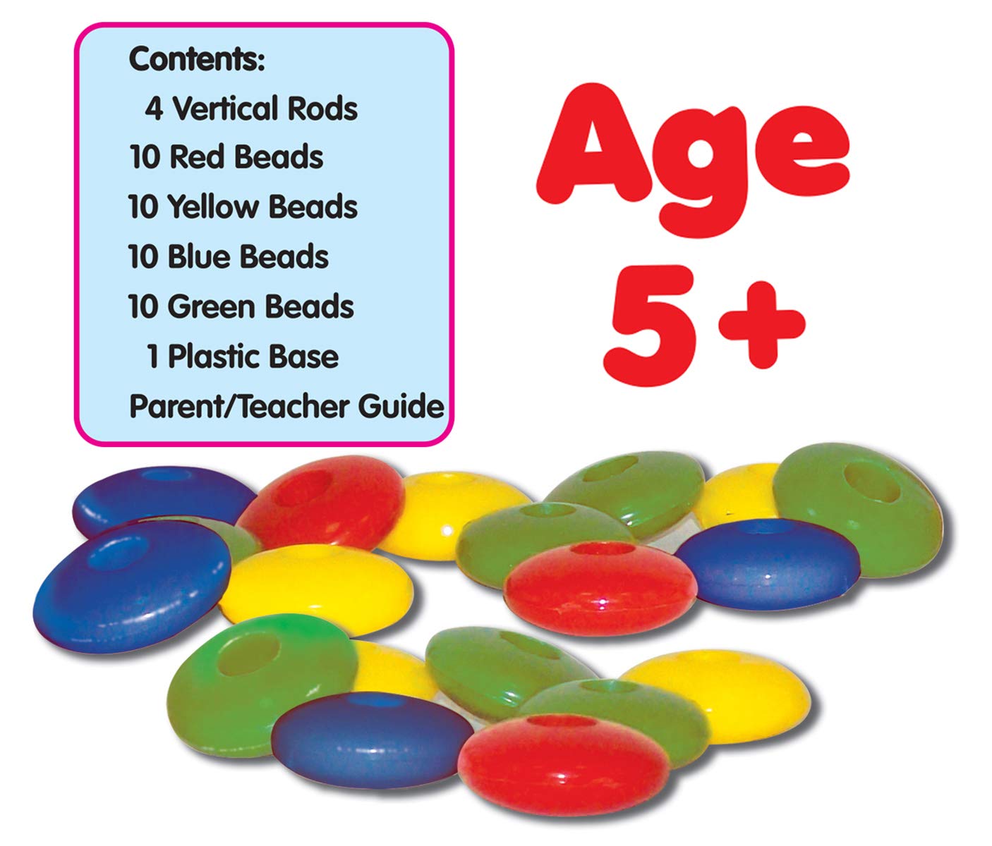 Complete Learning Set – This abacus for kids includes 4 vertical rods, 10 red beads, 10 yellow beads, 10 blue beads, and 10 green beads, all securely placed on a sturdy plastic base. It also comes with a Parent/Teacher Guide, making it an excellent educational tool for both home and classroom learning. With its well-structured design, it provides a hands-on approach to understanding numbers and counting.