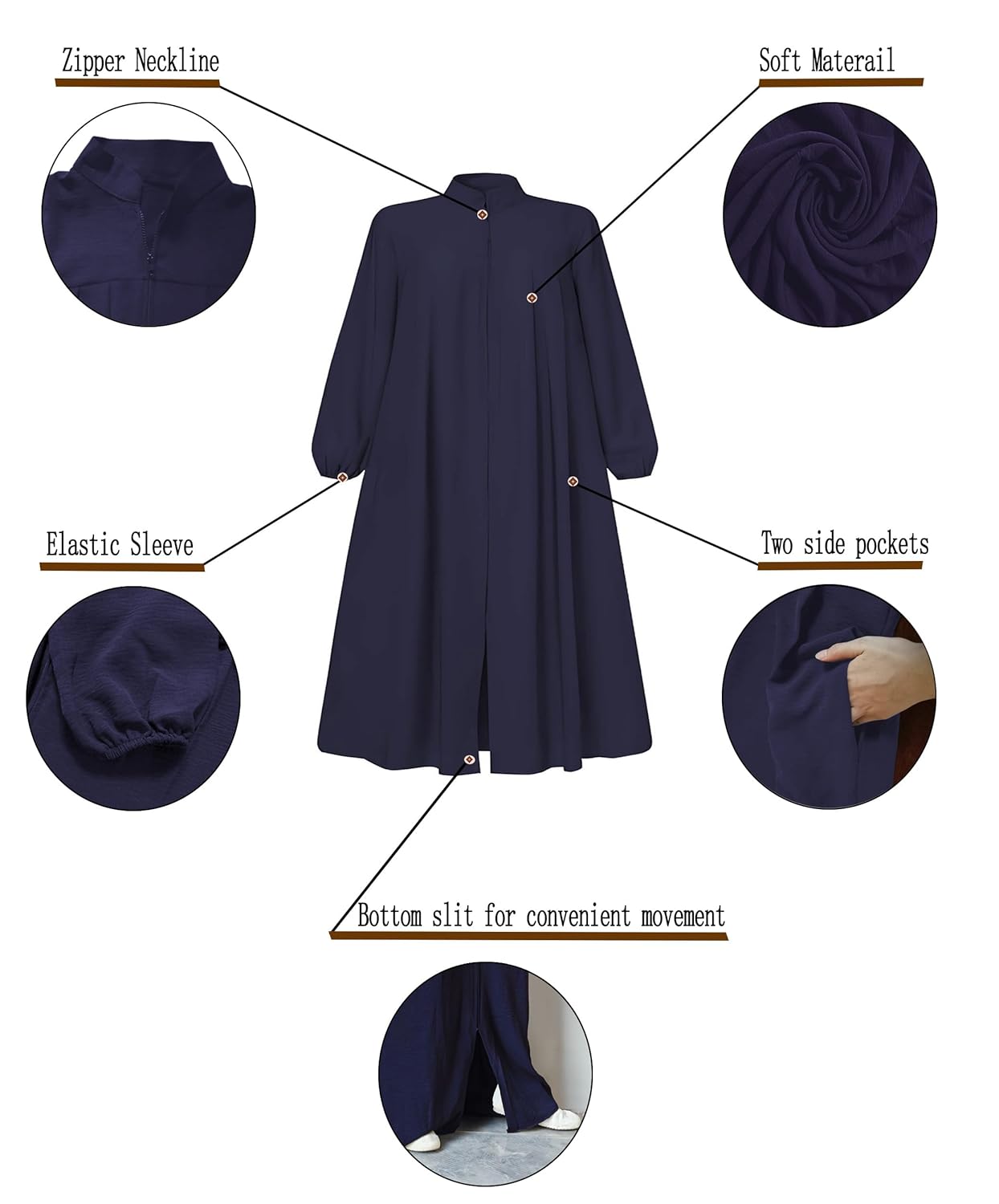 Feature: Long sleeve, with 2 big Pockets Dress, Front Zipper easy to wear, Crew Neck, Round Neck, Plus Size and Baggy Kaftan Dress, Black Prayer Islamic Muslim Dress for Girl, Kaftan Muslim Maxi Dress Abaya