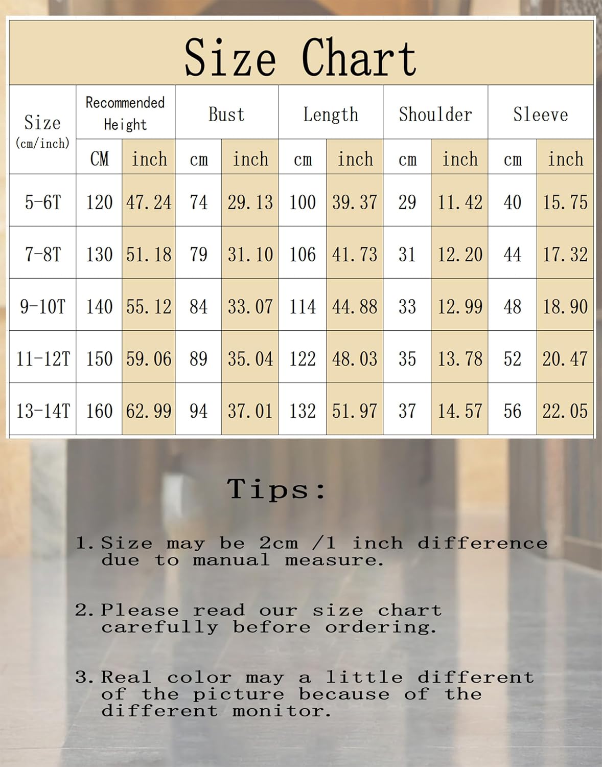 Size: Girls Abaya Dress Size Available: 5-6 Years old (120cm), 7-8 Years old (130cm), 9-10 Years old (140cm), 11-12 Years (150cm), 13-14 Years old (160cm)