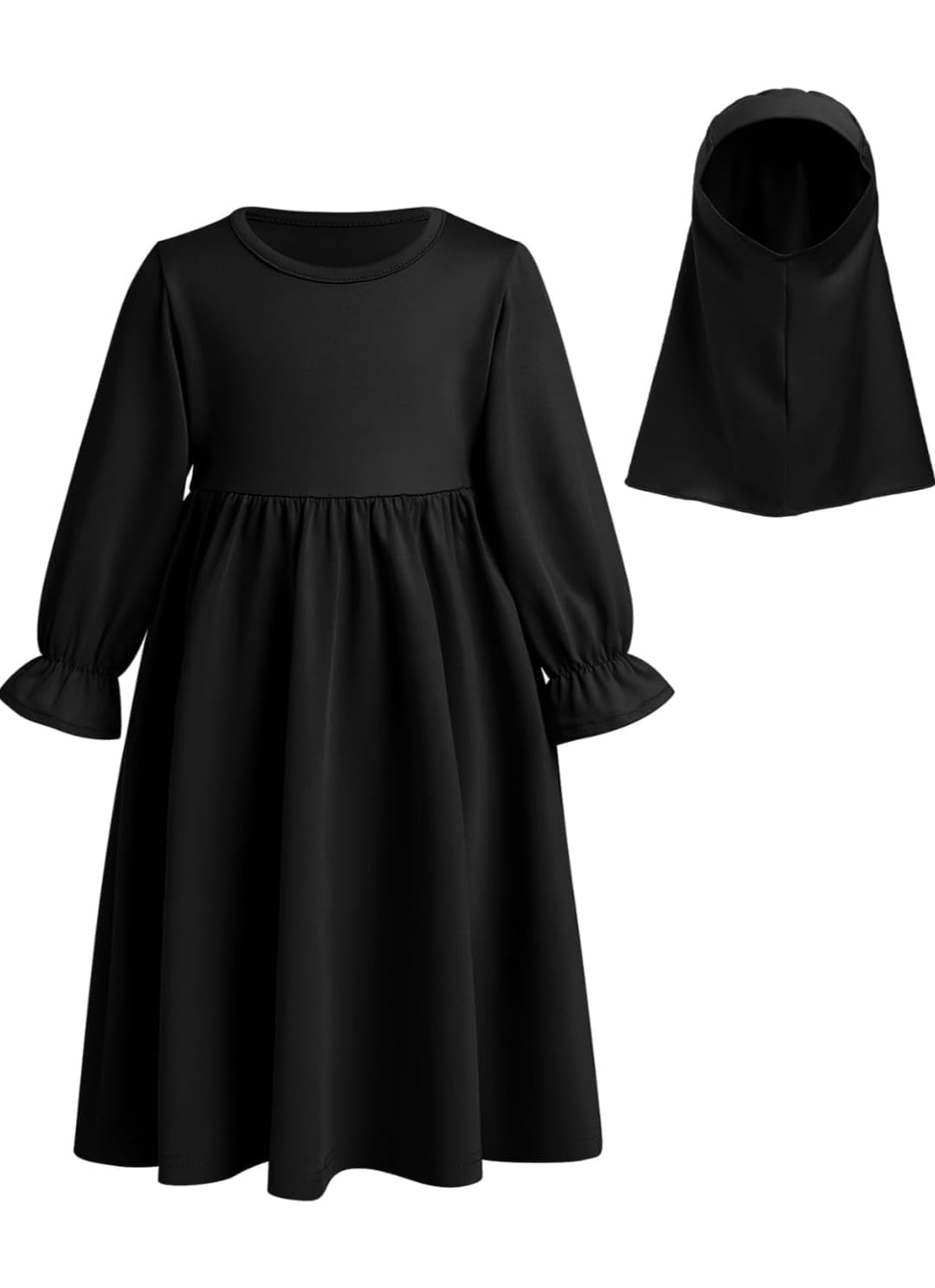 Girls Islamic Abaya Set with Hijab, Navy Blue, Traditional Muslim Prayer Dress, Long Sleeve Full Length Modest Clothing (black, 3-4 year)