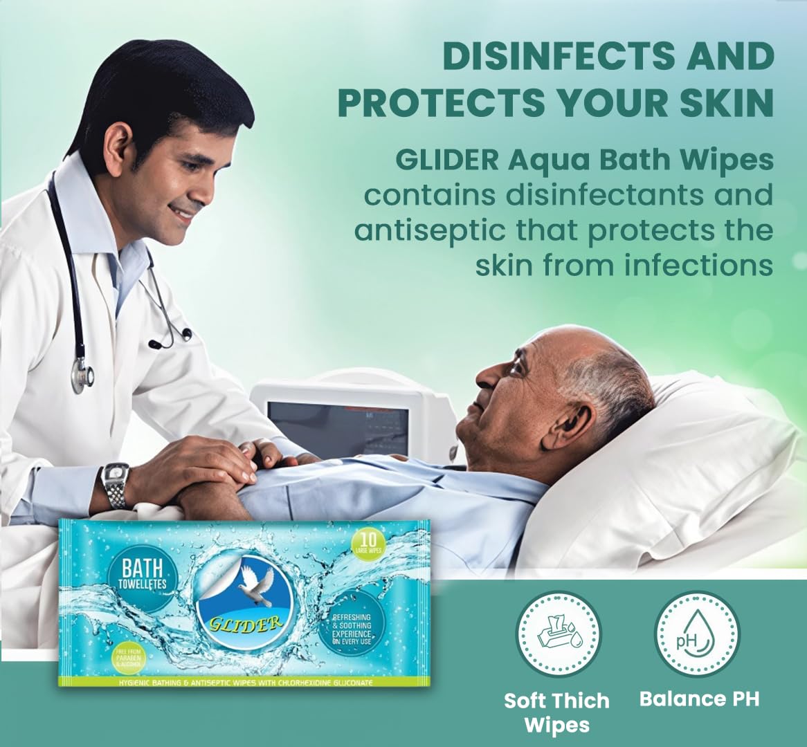 Glider Bed Bath Wipes | Adult Wet Wipes | 6 Packs | 60 Wipes | Antibacterial, Aloe Vera & Vitamin-Infused Cleansing Bath Towels