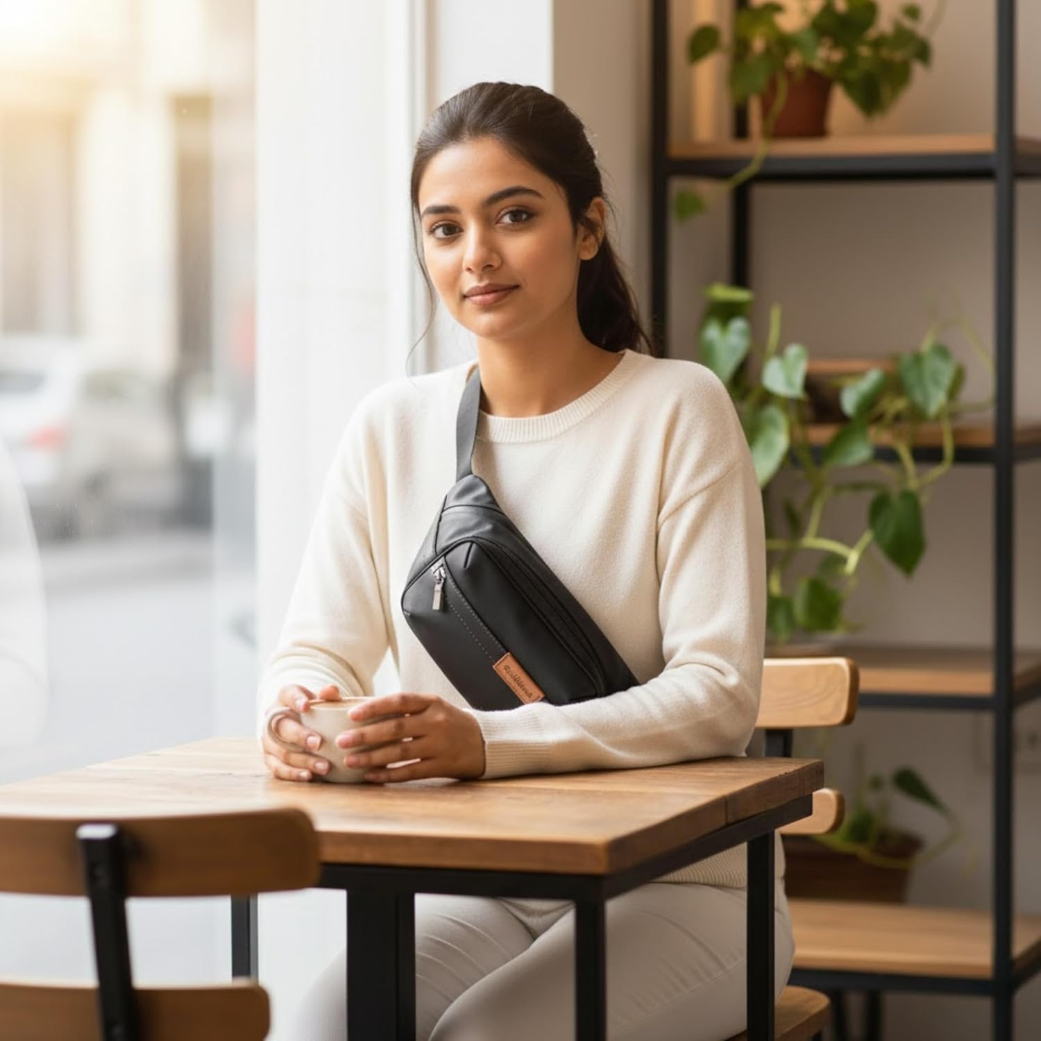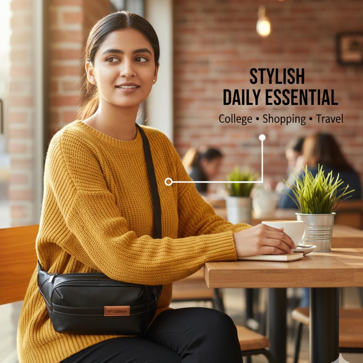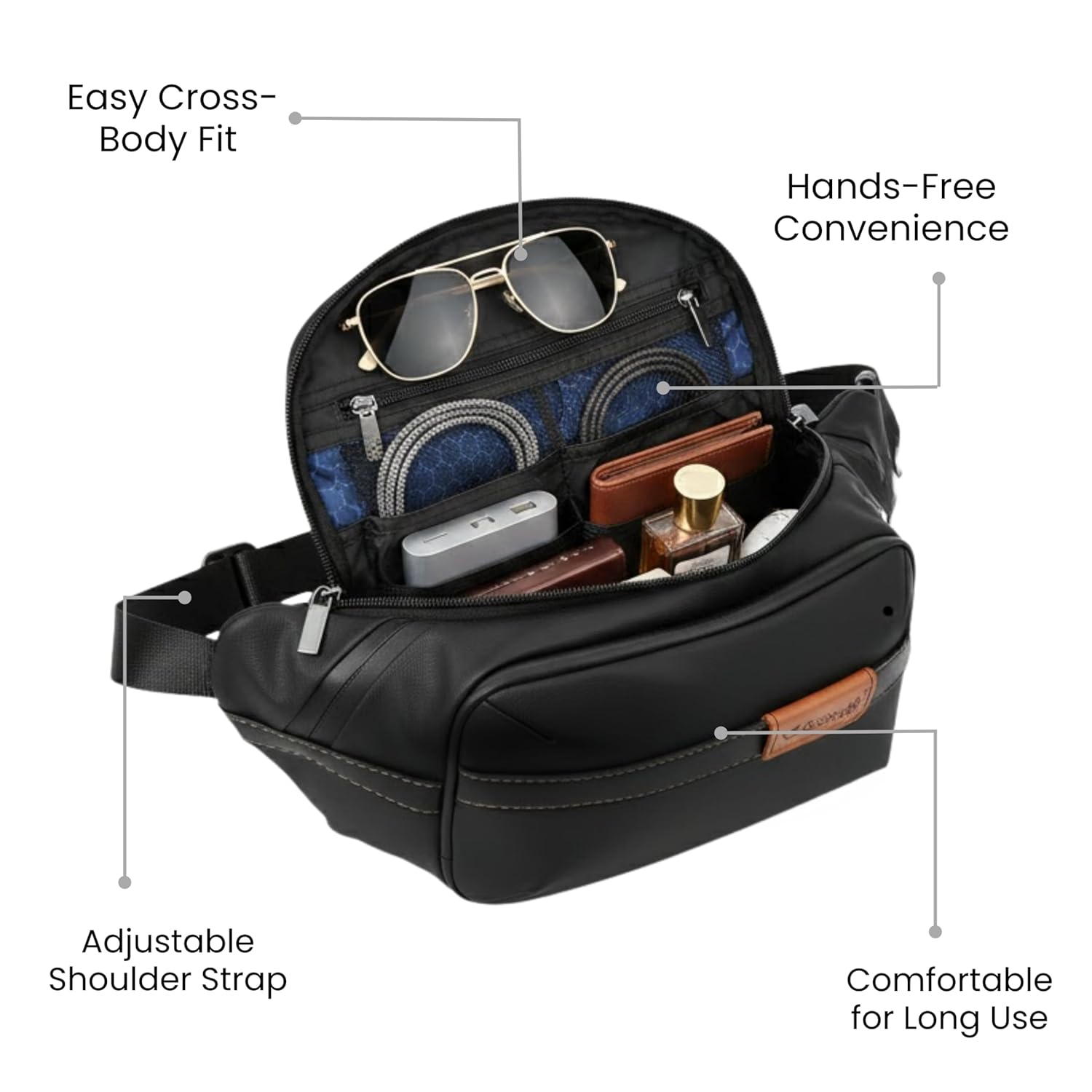 SMART STORAGE WITH 2 ZIPPERED COMPARTMENTS – Features two spacious zippered pockets to neatly organize mobile phone, wallet, power bank, keys, earphones, cards, and small accessories without bulk.