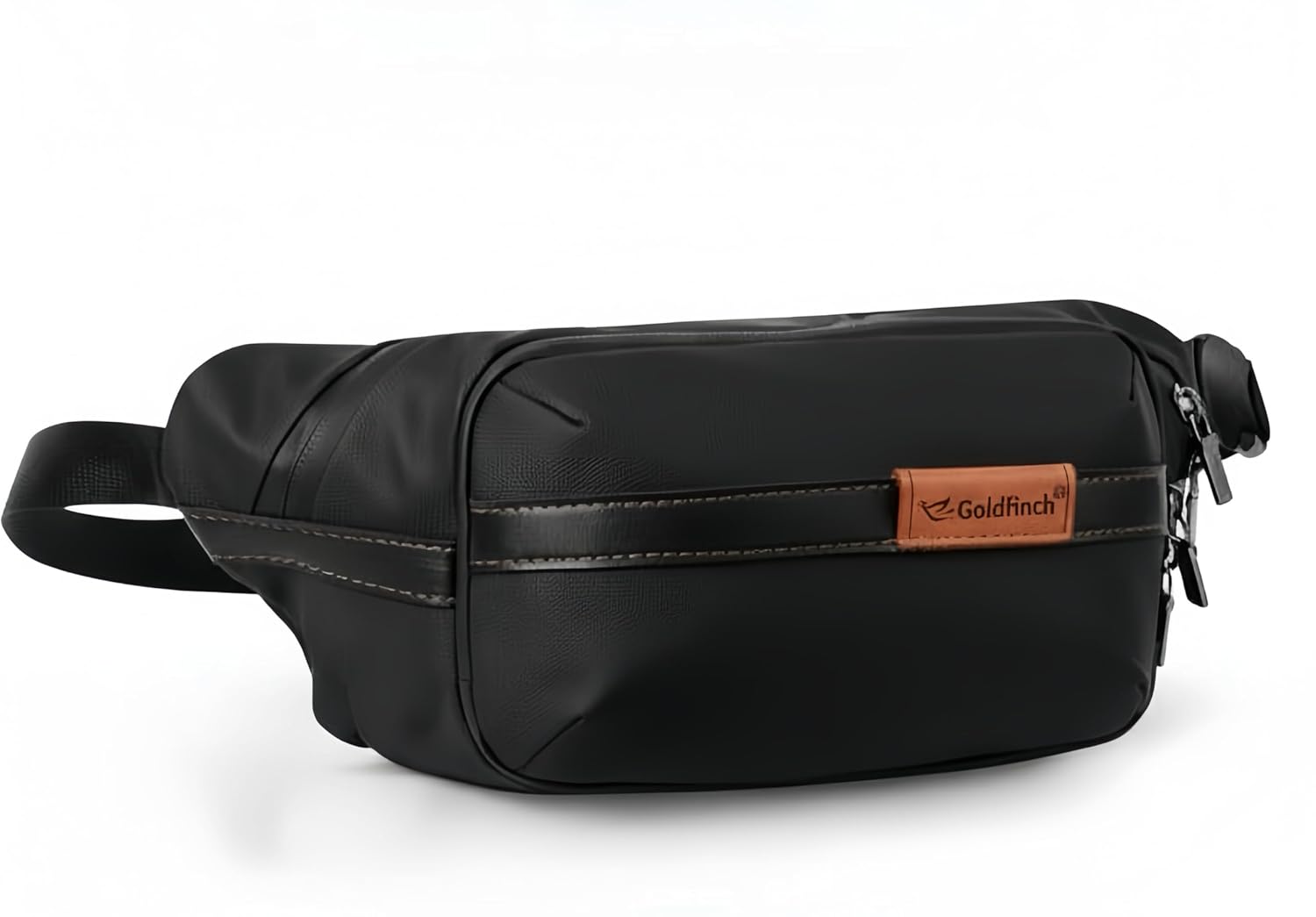 Goldfinch Waist Bag for Men & Women | Water-Resistant Crossbody Waist Sport Pouch with 2 Zippered Compartments, Back Pocket & Adjustable Strap for Travel, Money, Passport, Running, Gym Use | Black